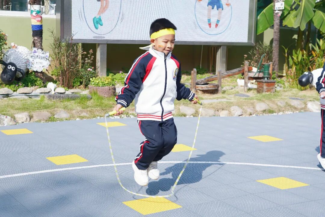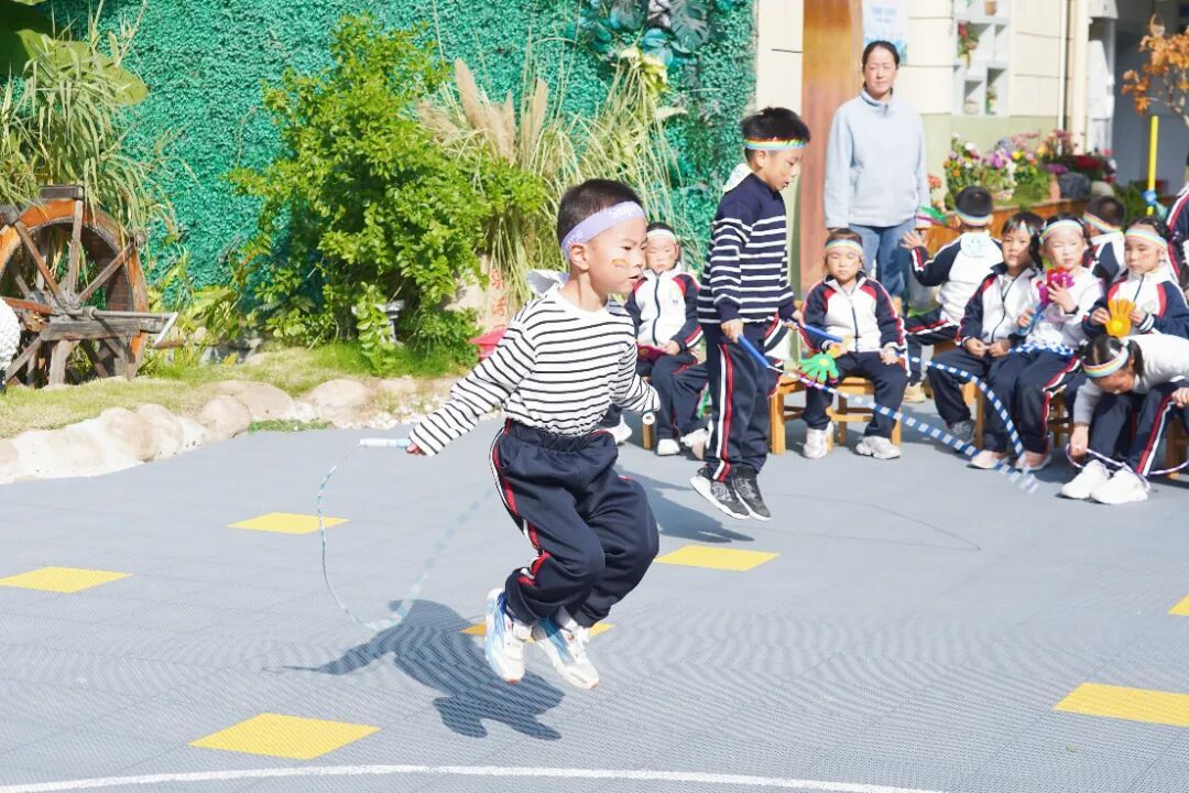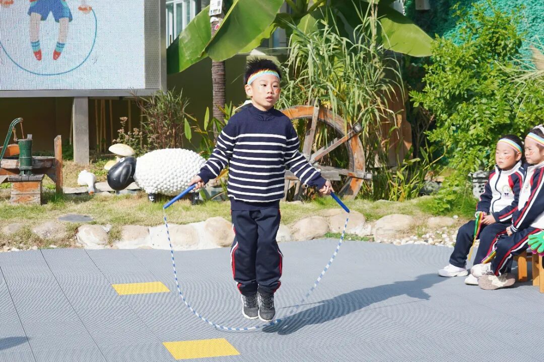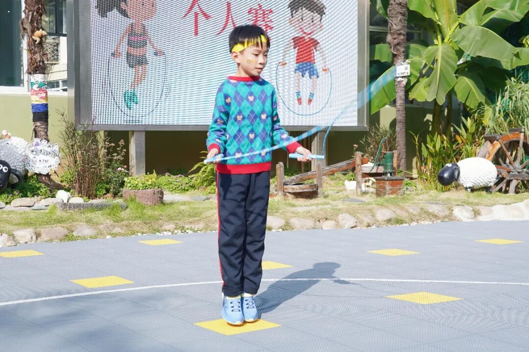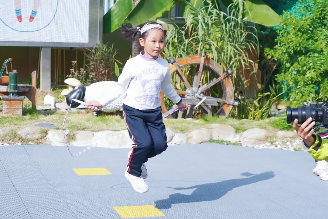 除闯关赛外,现场还举办了个人跳绳比赛。小选手们手握跳绳,随着口令快速甩动,“嗒嗒嗒”的落地声与计数声此起彼伏,展现出扎实的体能基础。