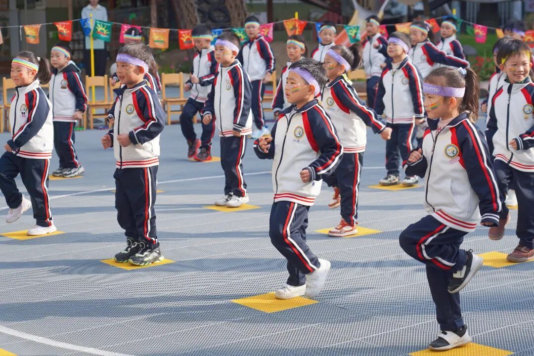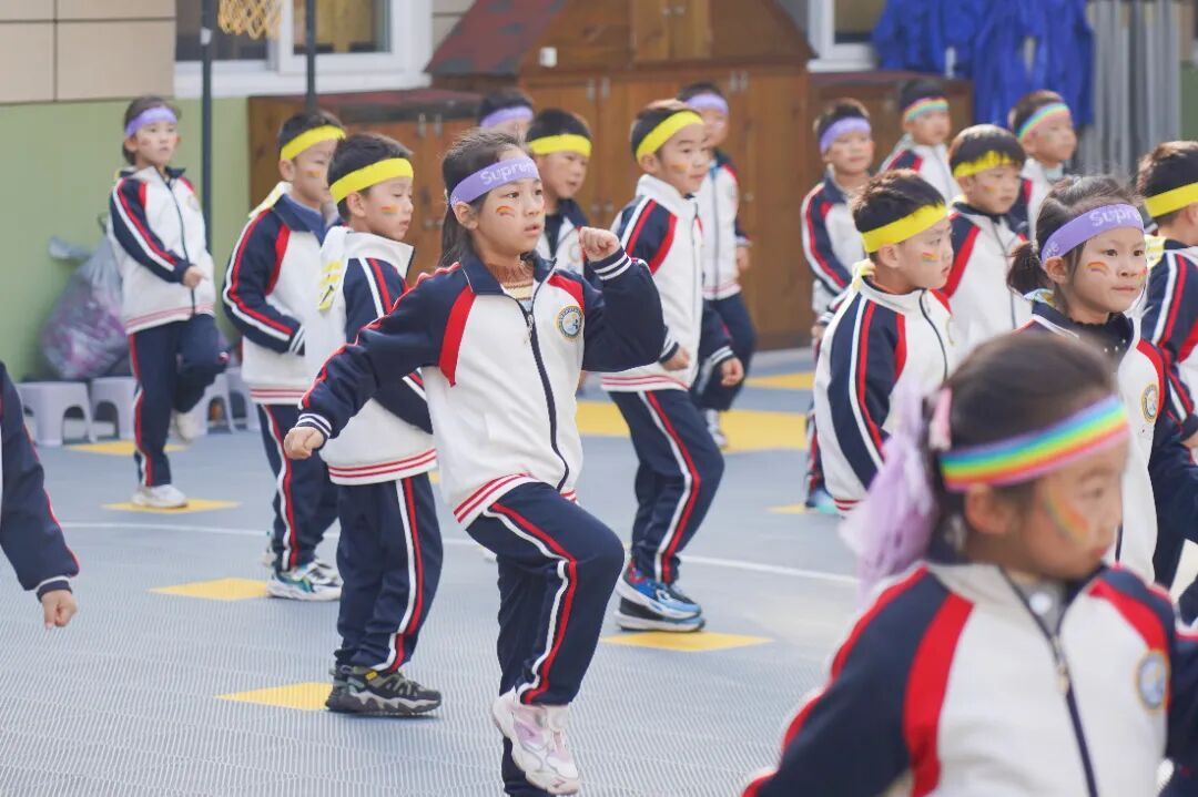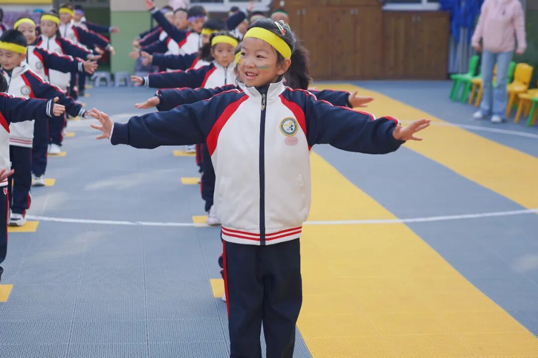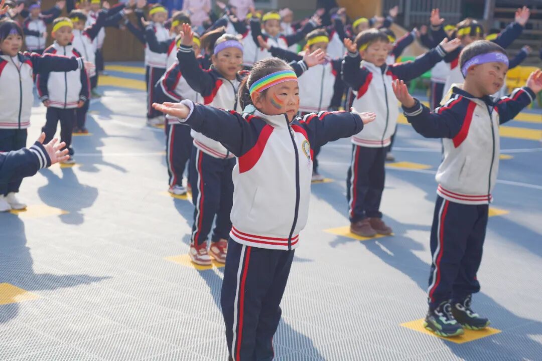 幼儿们在老师的带领下跳起活力四射的热身操,一个个小小的身影在阳光下舒展,为即将到来的挑战做好充分准备。