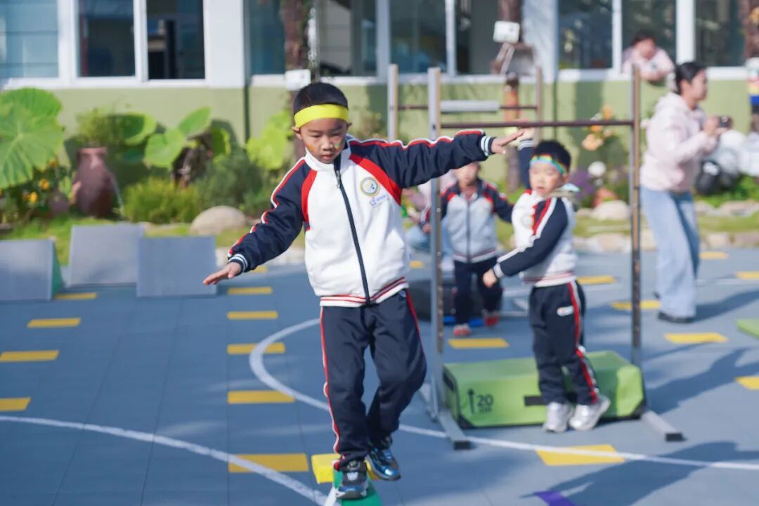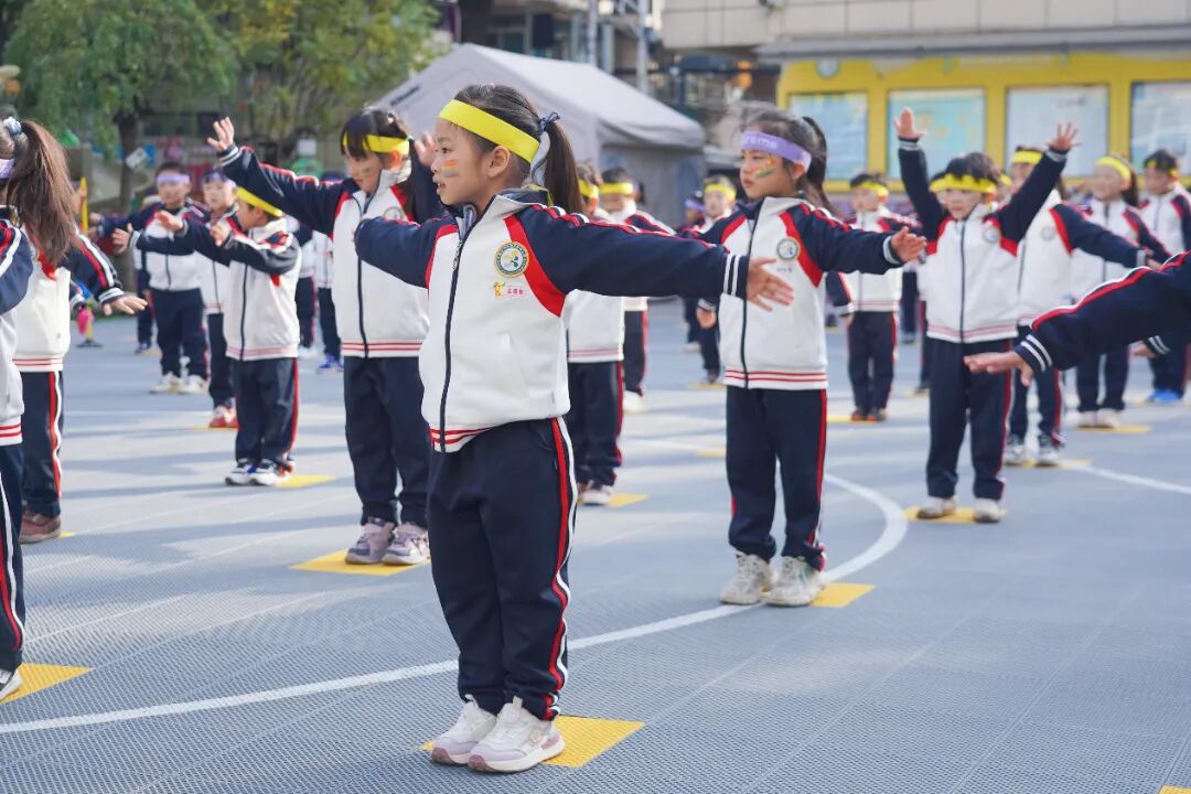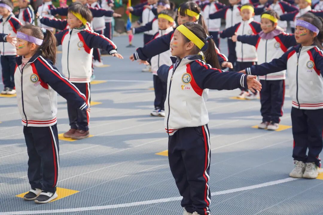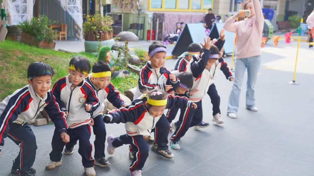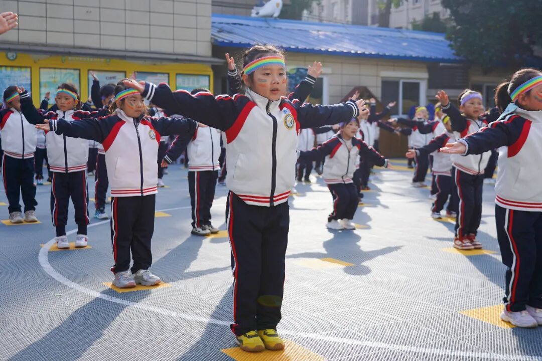 幼儿们在老师的带领下跳起活力四射的热身操,一个个小小的身影在阳光下舒展,为即将到来的挑战做好充分准备。