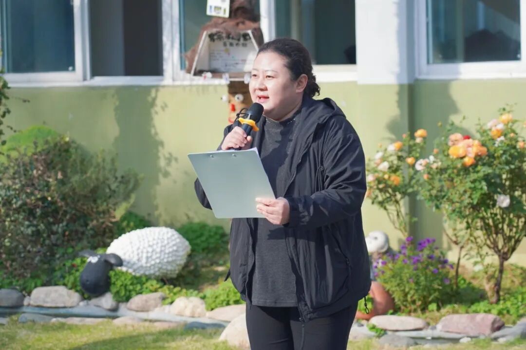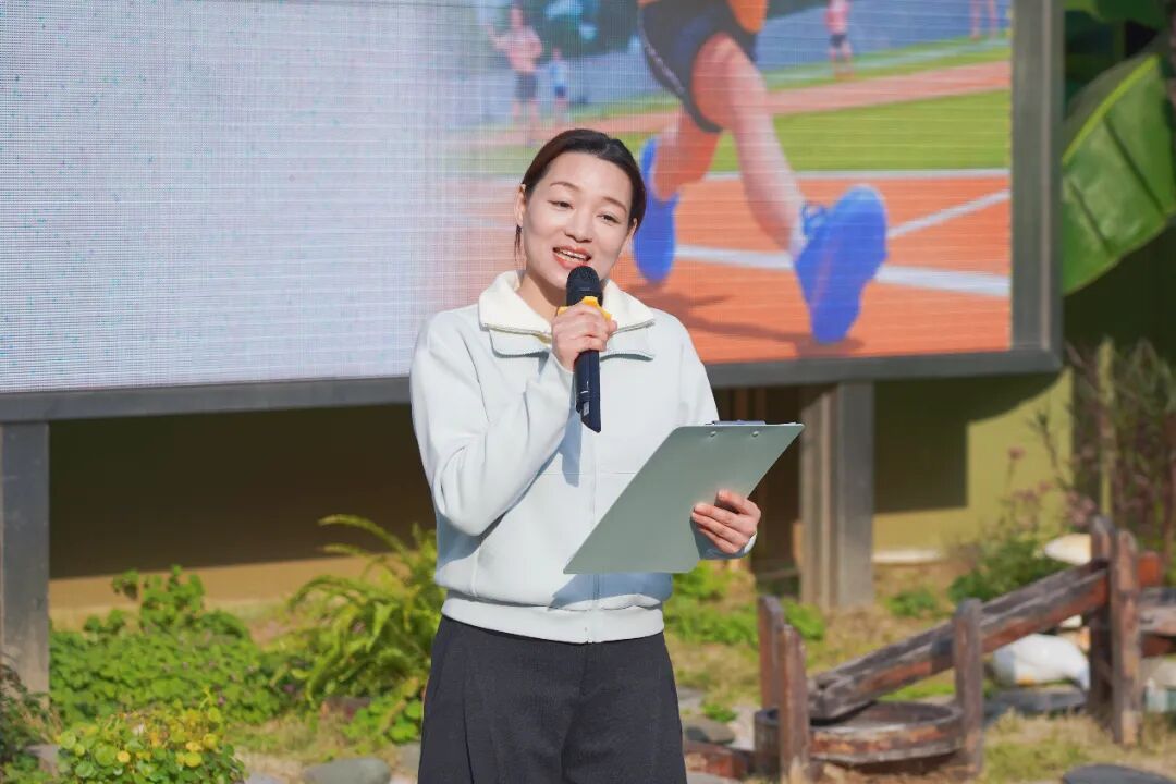 南湖育英幼儿园副园长徐颖宣布挑战赛正式开赛,并鼓励孩子们勇敢挑战、超越自我。