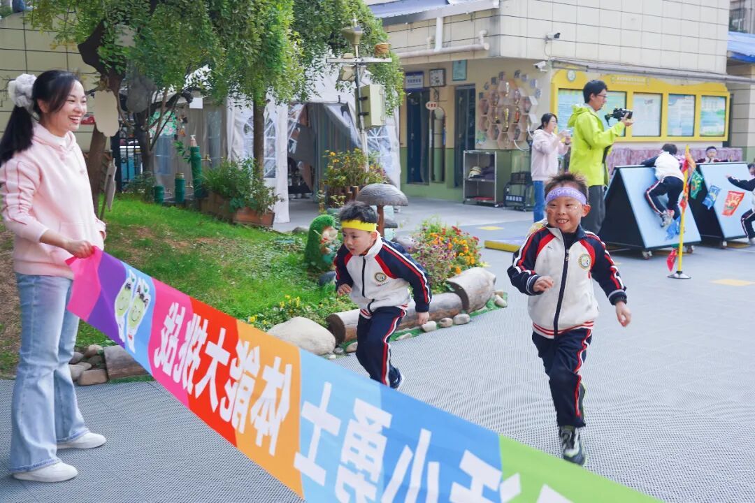 冲过终点线的瞬间,孩子们高举双手欢呼,场边小伙伴的加油声、老师的鼓励声交织在一起,汇成一片欢乐的海洋。