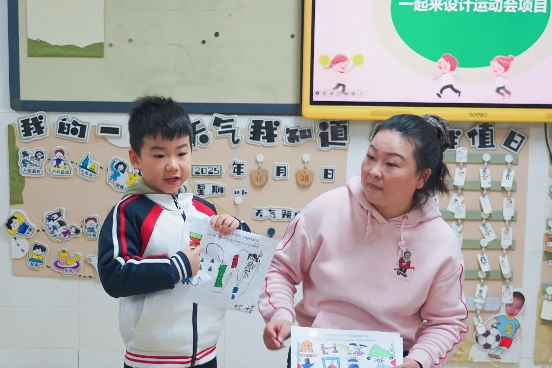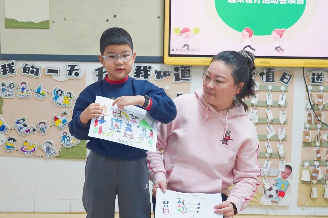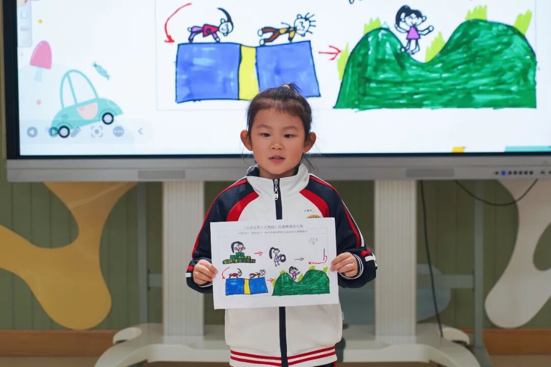 筹备期间,班级与年级组先后开展了议事厅活动,幼儿围绕“想玩什么运动”“闯关路径怎么设计”等话题畅所欲言、挥洒创意。随后,“小设计师”们带着绘制的闯关路径登台,分享他们的奇思妙想,这些创意最终融合成了一场完整的体能闯关。从运动会形式到关卡设置,均通过集体投票决定,有效培养了幼儿的表达、合作、解决问题的能力,赋予幼儿活动的决策权。