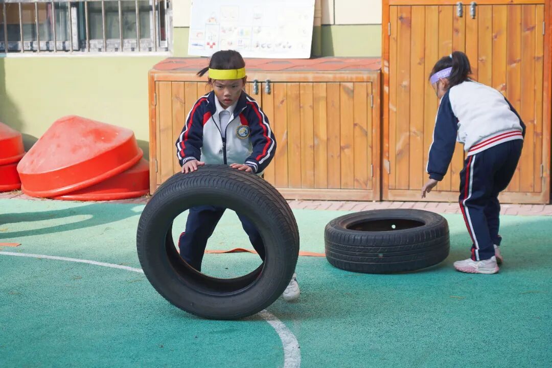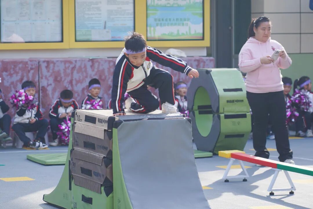 随着裁判员一声令下,小运动员们如离弦之箭冲向赛道。负重跑环节,他们稳稳托举道具快速前进;S形障碍区,灵活穿梭不碰标识;面对沉甸甸的轮胎,他们弯腰发力,或翻或滚,稳稳地将轮胎运向终点;翻越障碍时,他们手脚配合默契,蜷身、翻滚、跨越一气呵成,展现出良好的爆发力与协调性。
