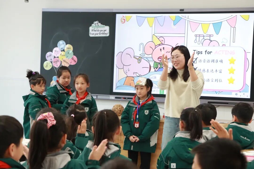 南京东南实验学校的徐璨老师在授课过程中紧密围绕单元主题图设计引导性问题,通过趣味指令引导学生读图。课堂上融入AI动画、智能体对话等创新形式,使课堂内容丰富且生动高效。
