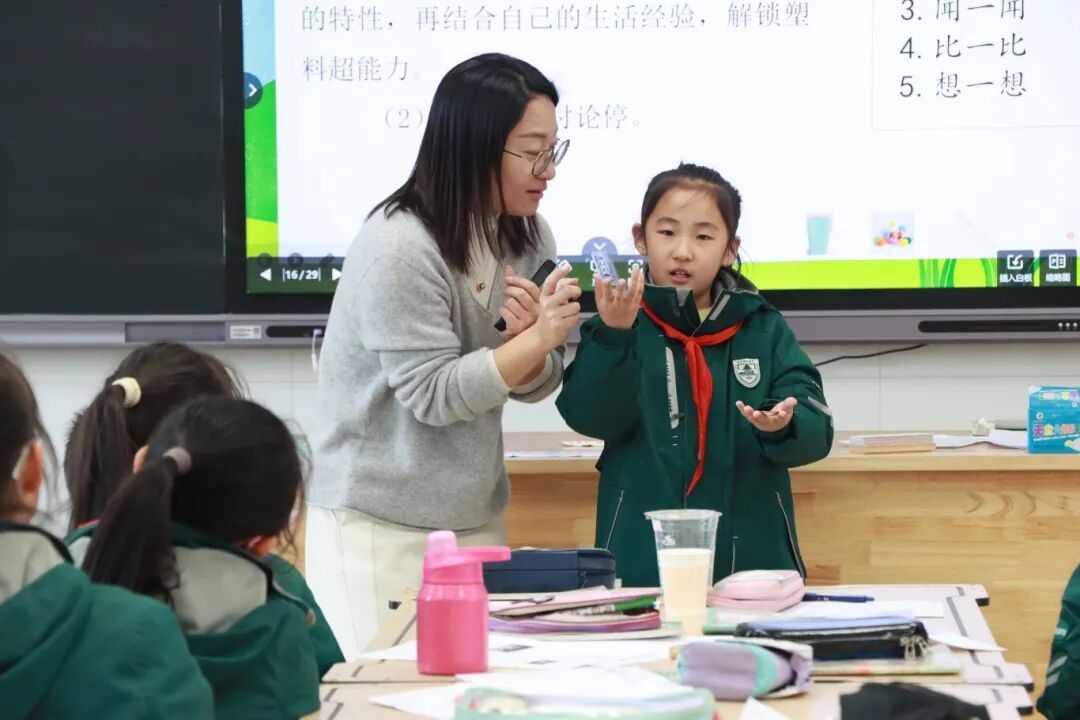 南师附中高淳学校的吕婷老师以“自带塑料制品+AI泡泡熊互动”导入,引发学生对塑料的关注。通过“塑料侦探”找物品、析性能,结合图片视频感知白色污染危害,再以小组讨论、借鉴限塑令等形式,探索减塑方法。