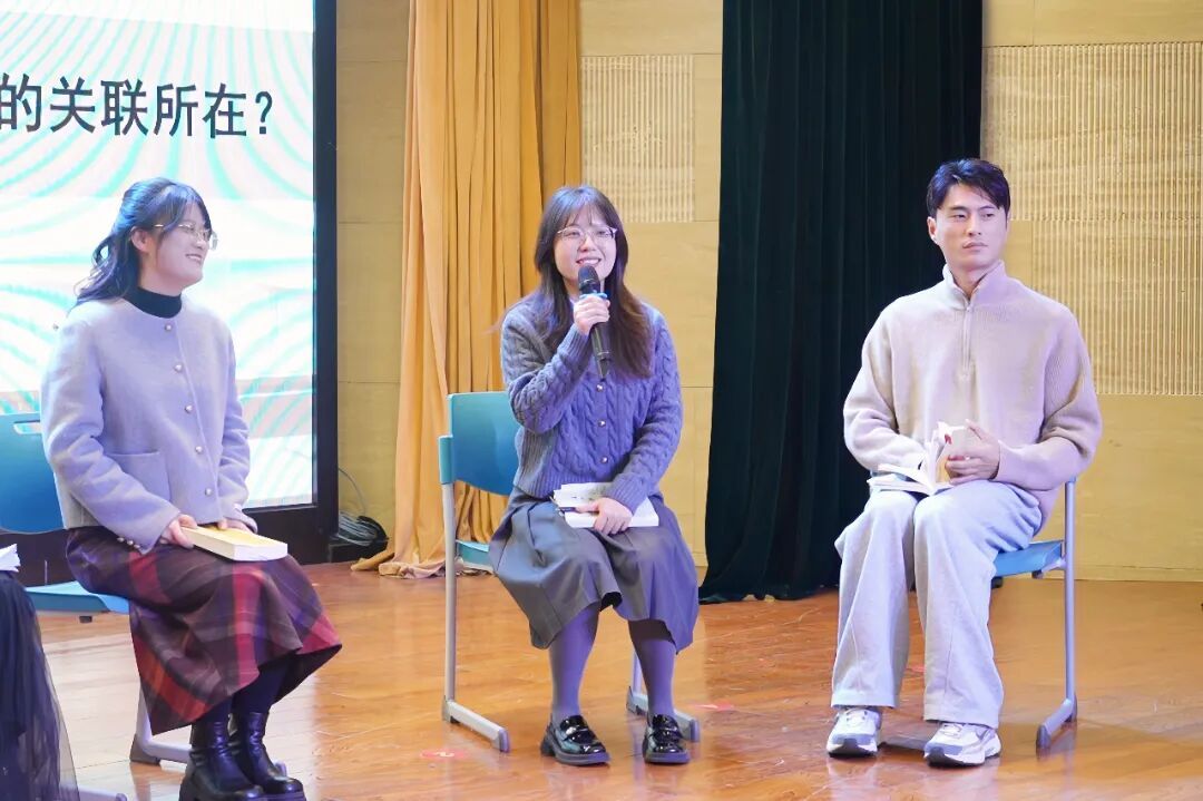 南京市第二十九中学初中部语文教研组长、南京市中小学生中华优秀传统文化经典领读人刘珍老师以《围炉品〈世说〉,静心沐雅风》为题,从“静读与行走的结合”“探究与表达并举”“经典与生活融通”三方面,分享了促读活动经验。刘珍老师介绍,本次经典促读活动是去年领读活动的延续,活动通过设置“个人自读—专题研读—成果展示”三阶任务,帮助学生从兴趣出发确立方向,借助小组合作、问题导引与创意表达,完成从感知到探究、从接受到创造的阅读跃升,真正让经典在趣味中亲近,在思考中沉淀。