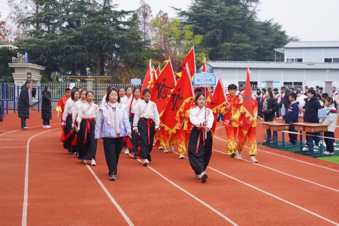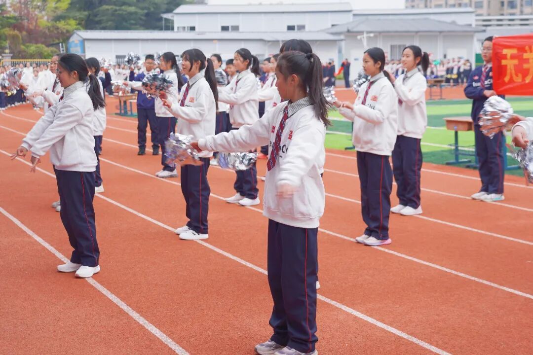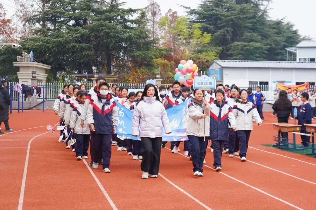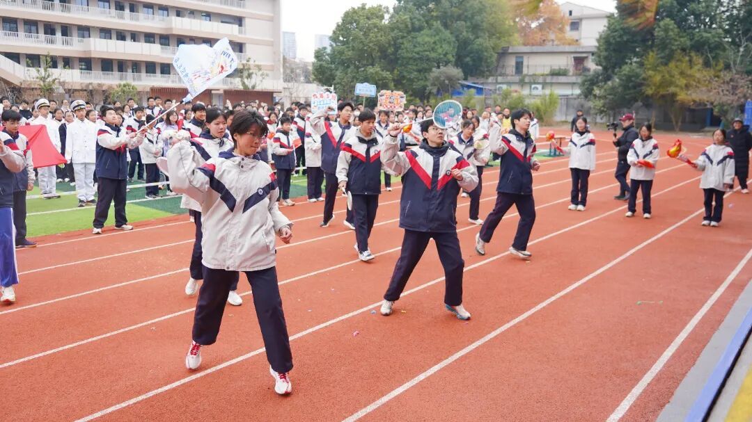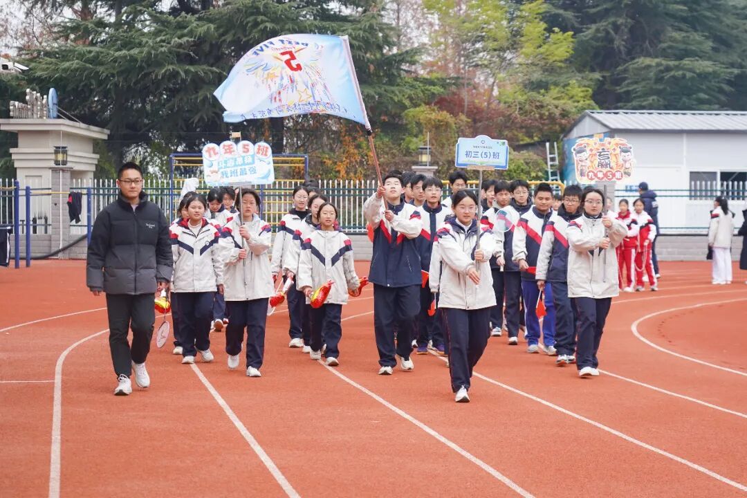 本届运动会以“燃动青春向至善,五育并举强体魄”为主题,各班级循着“致敬体育人物,传承体育精神”的脉络,让榜样力量与少年意气在赛场上同频共振。各班级方阵的创意亮相精彩纷呈!有的班级化身“跳水梦之队”,展现冠军陈芋汐“水花消失术”背后的坚持与执着;有的班级以“亚洲飞人” 苏炳添为精神标杆,迈着铿锵步伐模拟冲刺瞬间,诠释“更快、更高、更强”的奥运精神;还有的班级以整齐划一的动作再现中国女足姑娘们敢打敢拼、永不言弃的“铿锵玫瑰”风采…… 一个个鲜活的体育符号生动呈现,既展现了班级的独特风貌,更让坚持、拼搏、突破的体育精神在学子们的心中生根发芽。