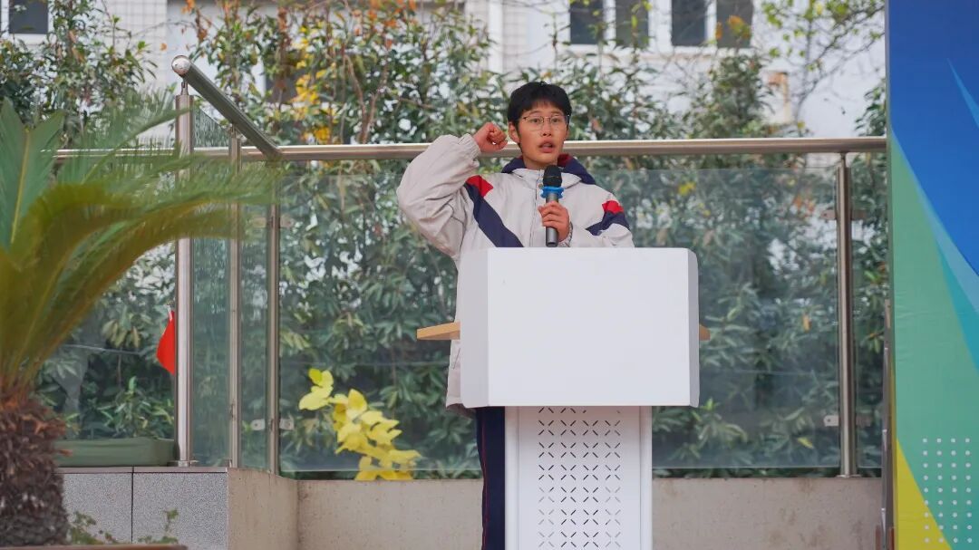 九(1)班黄忆雯同学作为运动员代表发言,表示全体运动员将以积极饱满的态度参赛,赛出风格、赛出水平,展现青春风采。