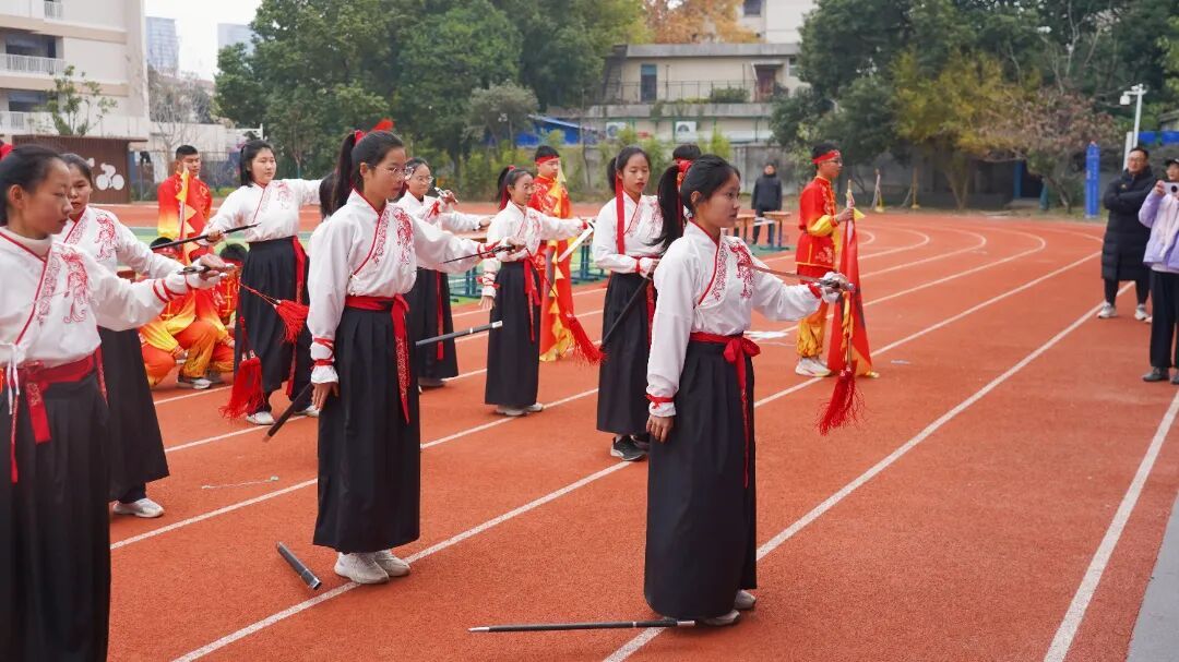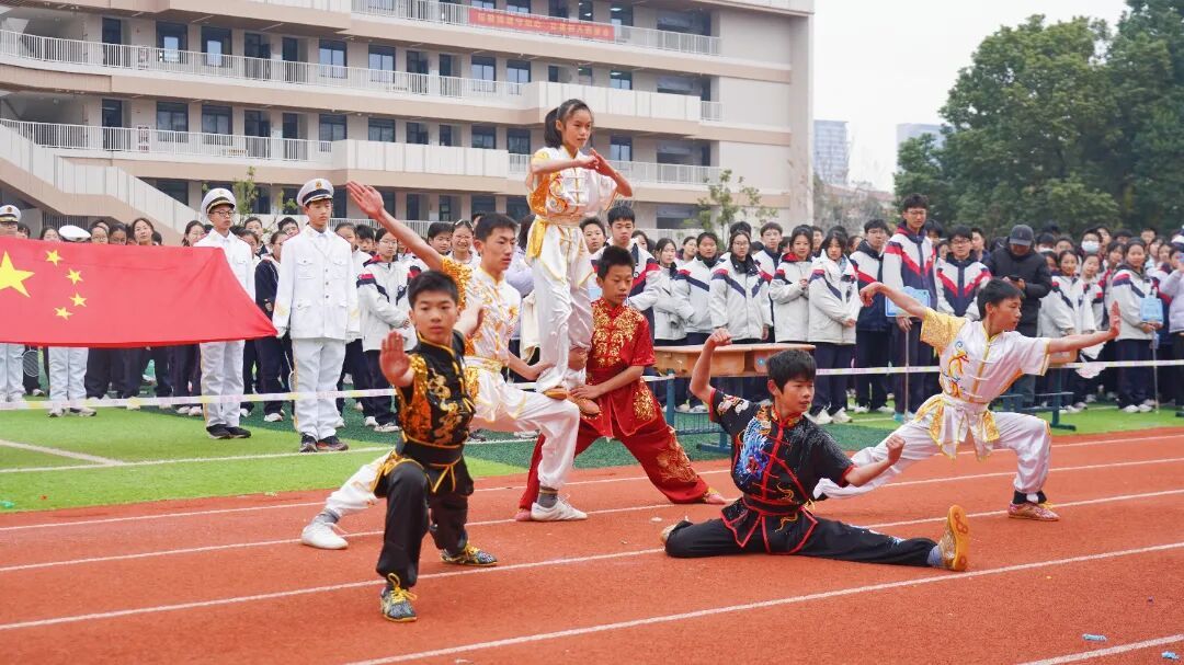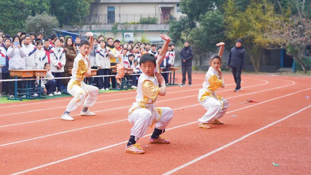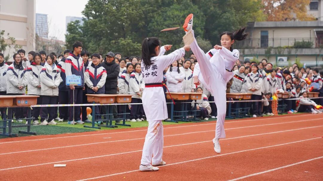 校武术队、跆拳道队、花绳队也带来震撼表演。武术招式刚劲、跆拳道出腿凌厉、花绳灵动翻飞,赢得全场师生的阵阵喝彩。