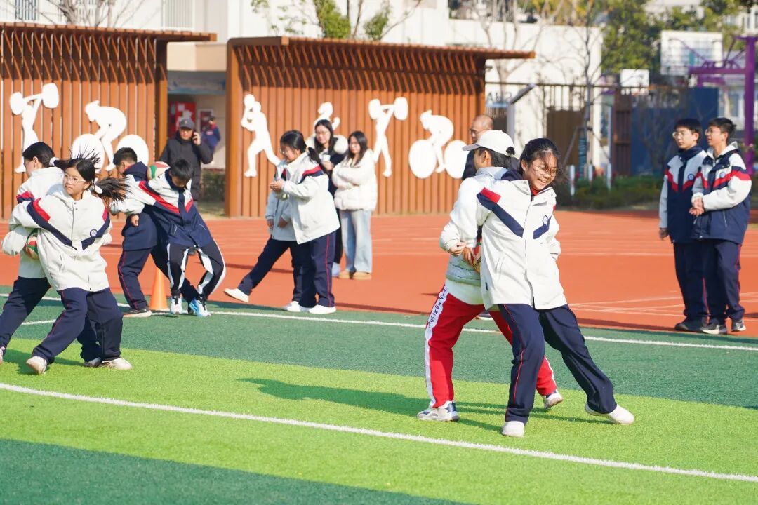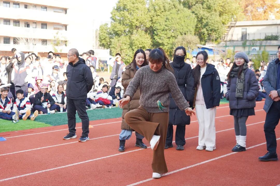 本届运动会还特别设置了踢毽子、投沙包、拔河等教师趣味比赛。从谆谆教诲的师长,到活力四射的队友,“至善”之师们在赛场上尽情释放活力,与同学们共享运动的快乐。