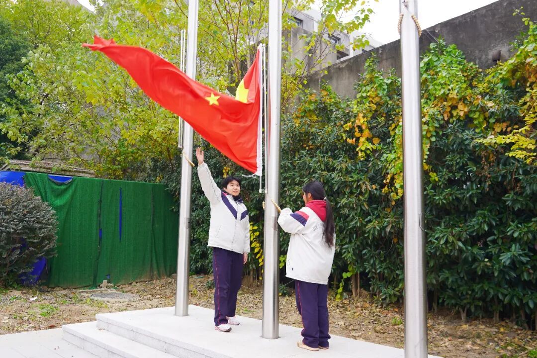 全体起立,奏唱国歌,爱国之情在每一位师生心中激荡。