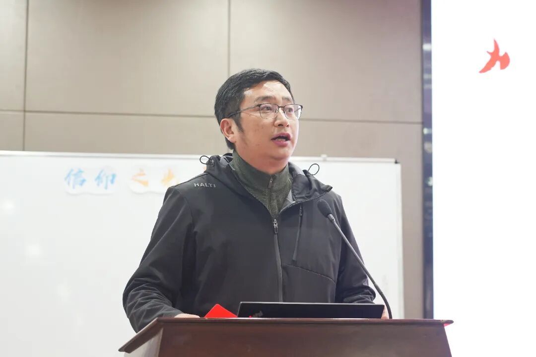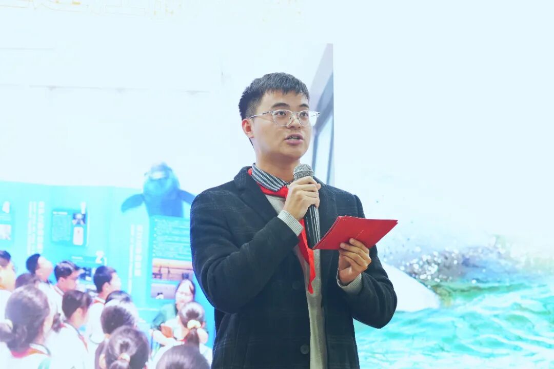 南京师范大学附属中学树人学校副校长袁勇致辞。他表示,学校始终将少先队工作置于育人核心位置,以“许雪娥名辅导员工作室”为引领,通过红领巾宣讲、情景模拟、微队课等丰富实践形式,推动红色教育与成长引导落地生根。他强调,少先队事业关乎红色江山代代相传,辅导员队伍正是这项事业的中坚力量,学校将以本次活动为契机,坚守“以儿童为中心”的教育理念,深耕党的故事,高效整合学校周边红色资源与生态资源,构建全方位、立体化的育人实践大课堂,助力每一位少先队员在星星火炬的指引下茁壮成长。