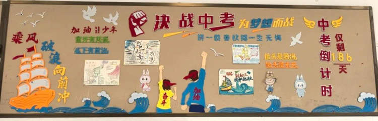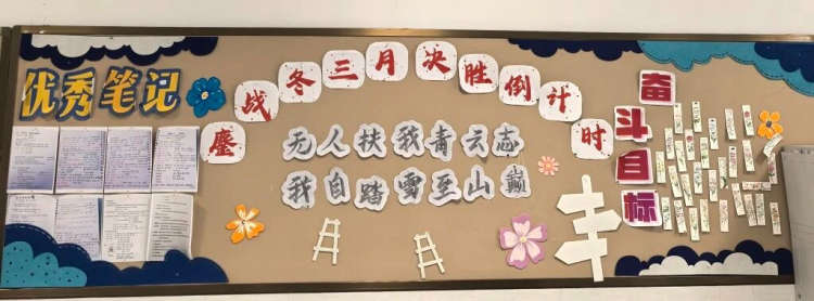 来到初三年级,黑板报的氛围为之一变,弥漫着冲锋的号角声。“鏖战冬三月”的主题醒目而充满力量。这里不仅是方法的“战略指挥部”,展示着高效复习策略与时间管理秘籍;更是精神的“鼓舞阵地”。它时刻提醒着每一位中考备战的学子:冬季是积蓄力量、决胜未来的关键期,需要以钢铁般的意志和科学的规划,去迎接春天的绽放。