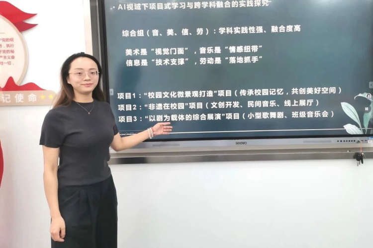 本学期,综合组聚焦“AI视域下的项目式学习与跨学科融合”开展课堂实践研究,围绕“校园文化微景观打造”、“非遗在校园”等项目,探索音乐、美术、信息等学科在智能技术支持下的教学创新路径,着力提升学生综合素养,推动学校美育教育的高质量发展。