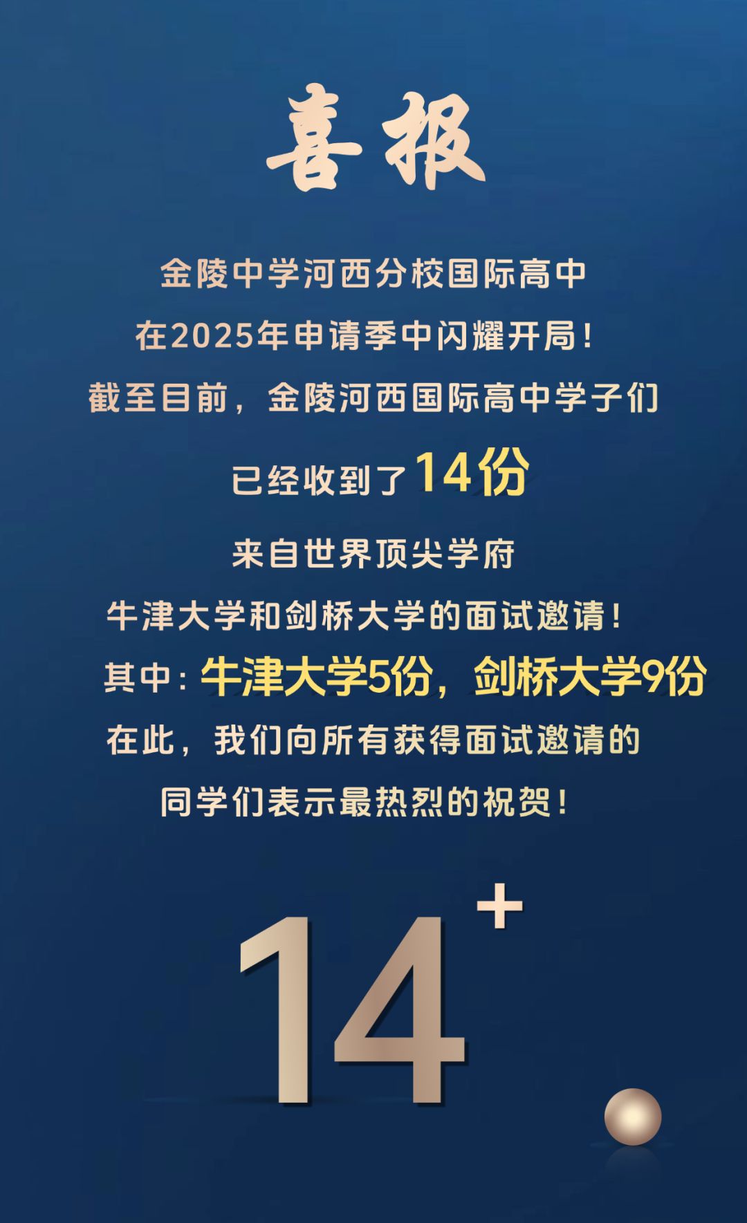 【河西•国际】14份“牛剑”面邀!金陵河西国际高中2025年申请季闪耀开局