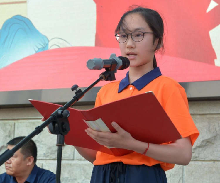 女1队汤雨彤同学代表全体初一新生在开营仪式上发言。汤同学首先向学校表示衷心感谢,感谢学校给他们这次锻炼自我的机会!同时她代表全体新生做出承诺:在夏令营期间,将以饱满的热情,乐观的态度克服一切困难,做到一切行动听指挥,不怕苦、不怕累,养成严守纪律、恪守条规的良好习惯。
