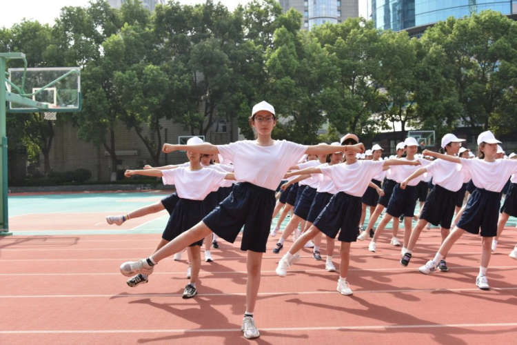 热血青春,同学们无惧骄阳,站在广阔的操场之上,用呐喊与汗水的力量昂首阔步,奋勇向前。