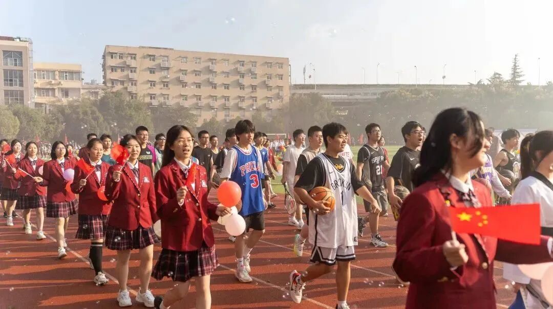 扬体育精神,展实验风采。2023年10月20日,“青春正当时,活力无极限”——南京一中实验学校第二十一届秋季田径运动会如期举行。本次运动会设初中男女组各六个项目,高中男女组各七个项目以及初中20人X50米迎面接力项目(10男10女)和高中4X100米男女混合接力项目,教工项目亦娱亦赛,趣味横生。开幕式上,陆军工程大学通信工程学院国旗班学员参与升旗仪式,南京市盲人学校跳绳社团学生表演竞速跳绳和花样跳绳,陈思宇代表南京一中男子排球队向南京一中实验学校运动会致贺词。