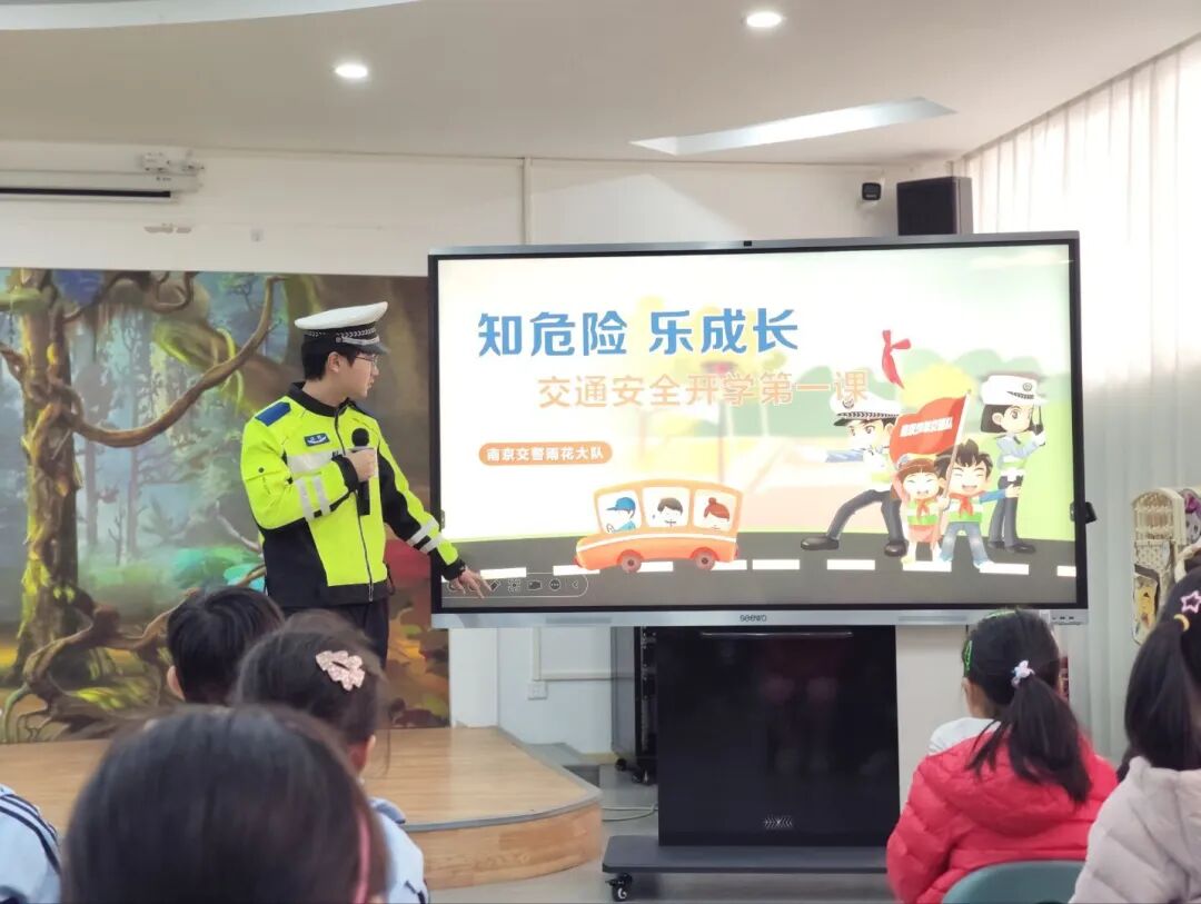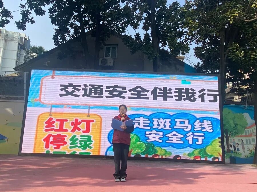 南京市雨花台区实验小学善水湾分校近日开展了“平安出行 守护成长”交通安全教育日专项活动。各班级精心组织了交通安全主题队会,通过案例讲解、知识竞答、情景模拟等形式,引导学生学习交通法规,识别危险行为,掌握安全出行技能,强化了学生的规则意识和自我保护能力。校园大屏幕循环播放生动形象的交通安全宣传片与警示标语,将安全知识可视化、日常化,营造出浓厚的校园安全教育氛围。此次活动通过课堂教育与环境宣传相结合,切实提升了全体师生的交通安全素养。