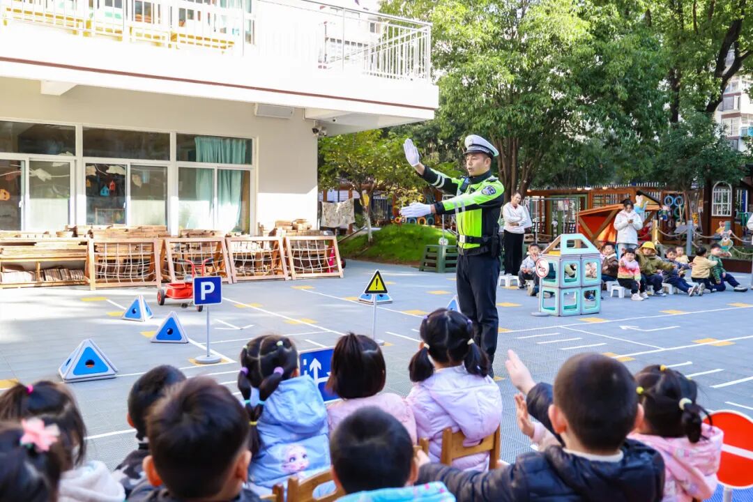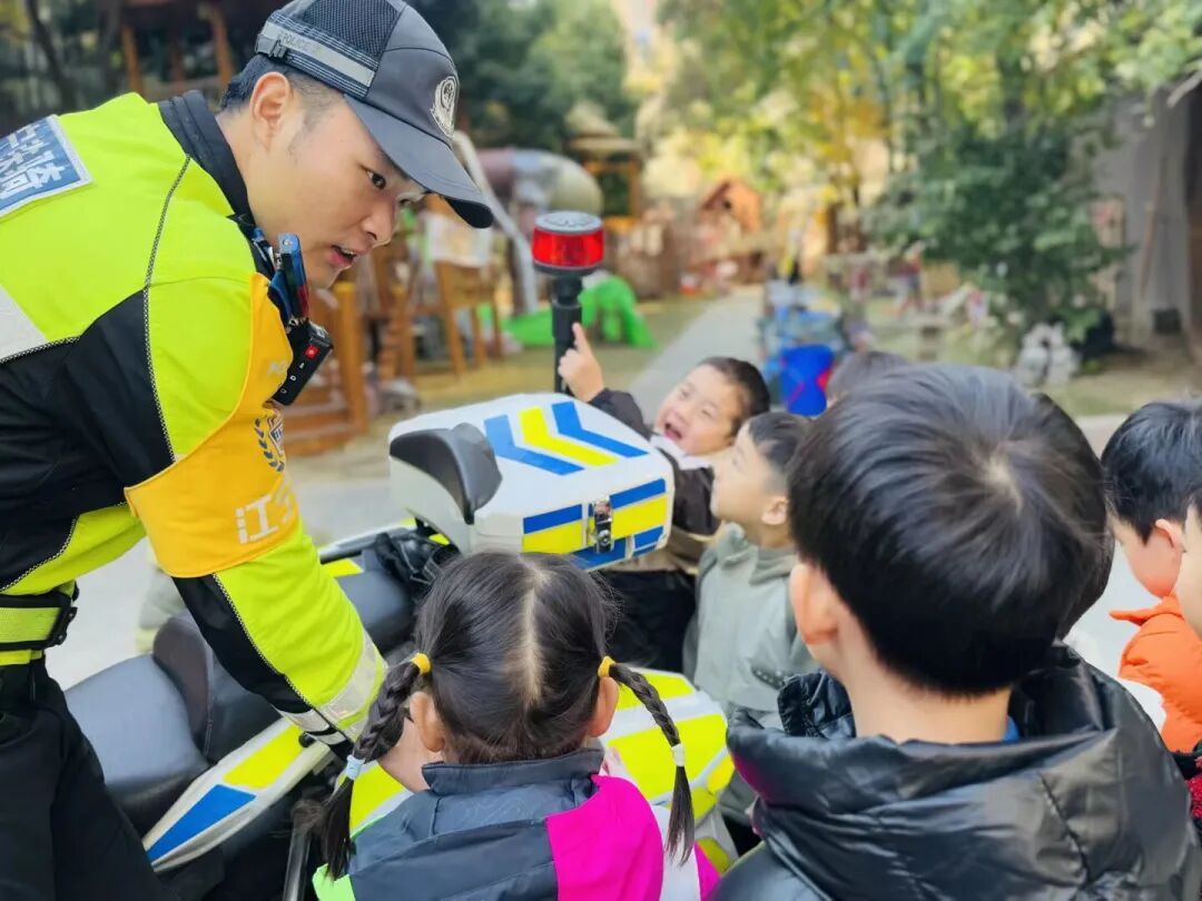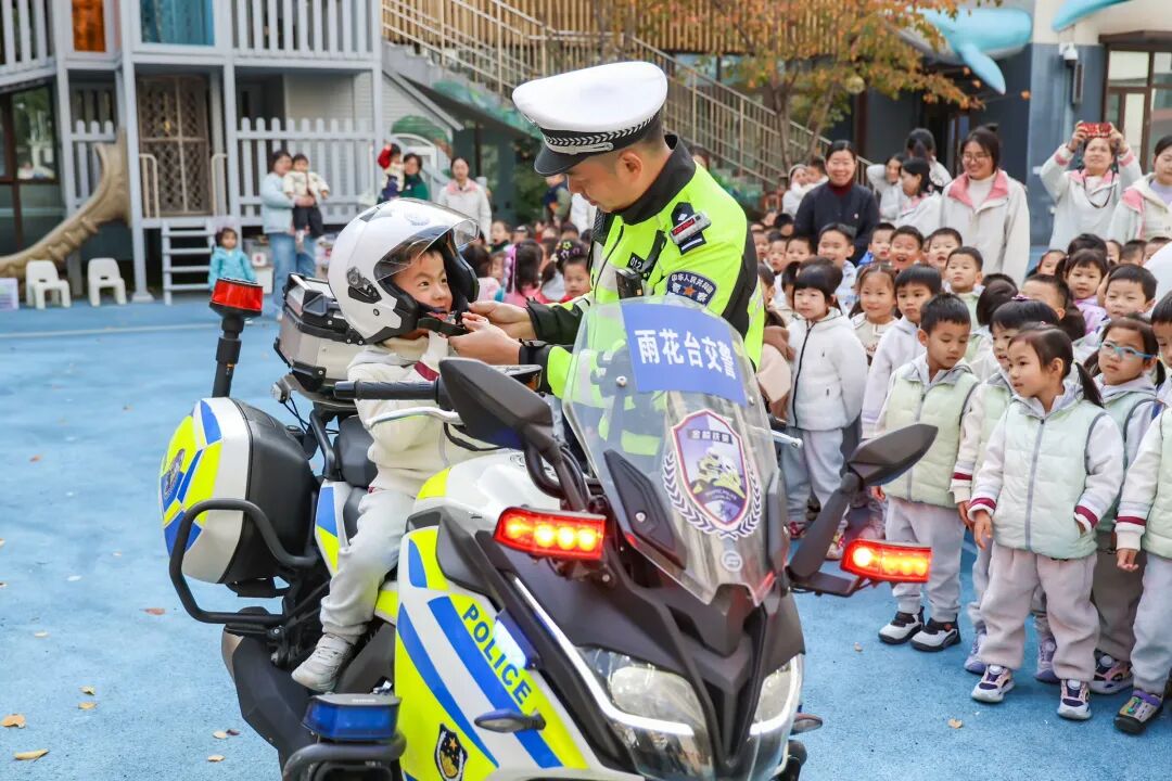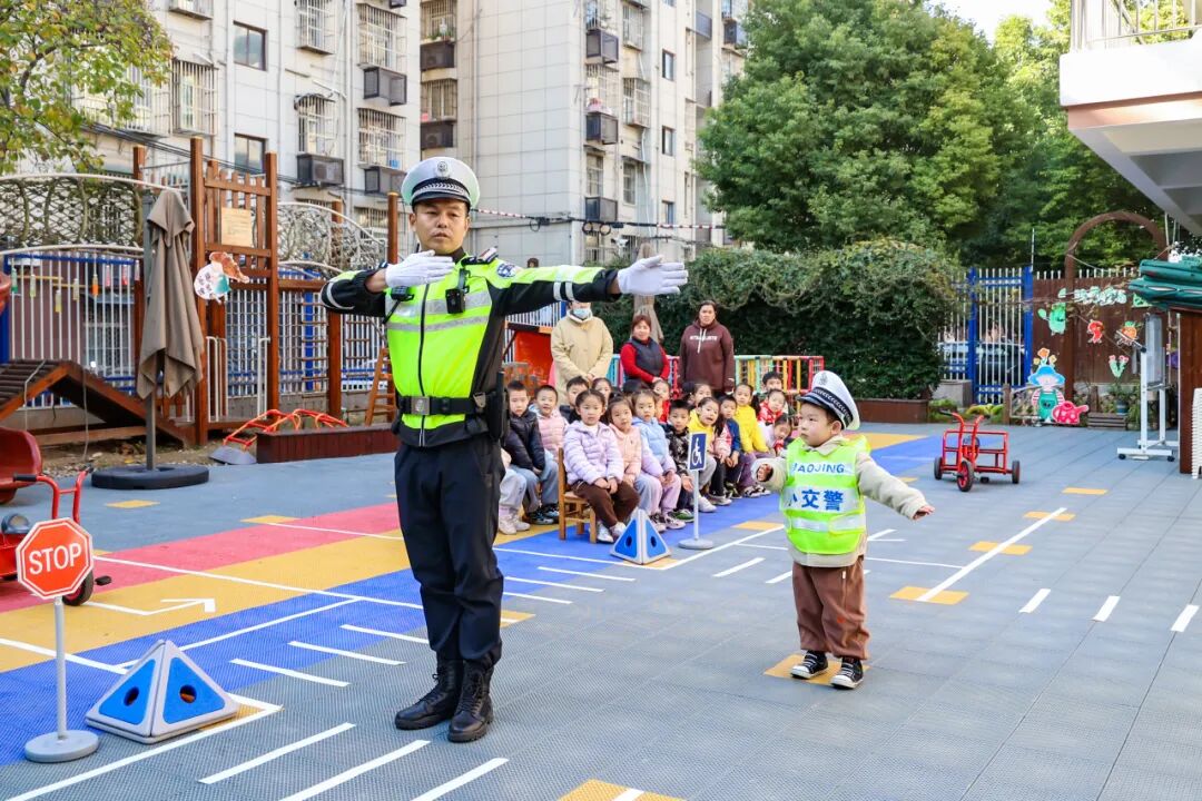在第十四个“全国交通安全日”来临之际,11月26日,雨花台区龙福幼儿园邀请南京市公安局交通管理局雨花台区大队交警走进校园,开展交通安全主题教育活动。交警通过讲解知识、互动游戏和情景模拟等方式,用寓教于乐的形式让交通规则深入童心。