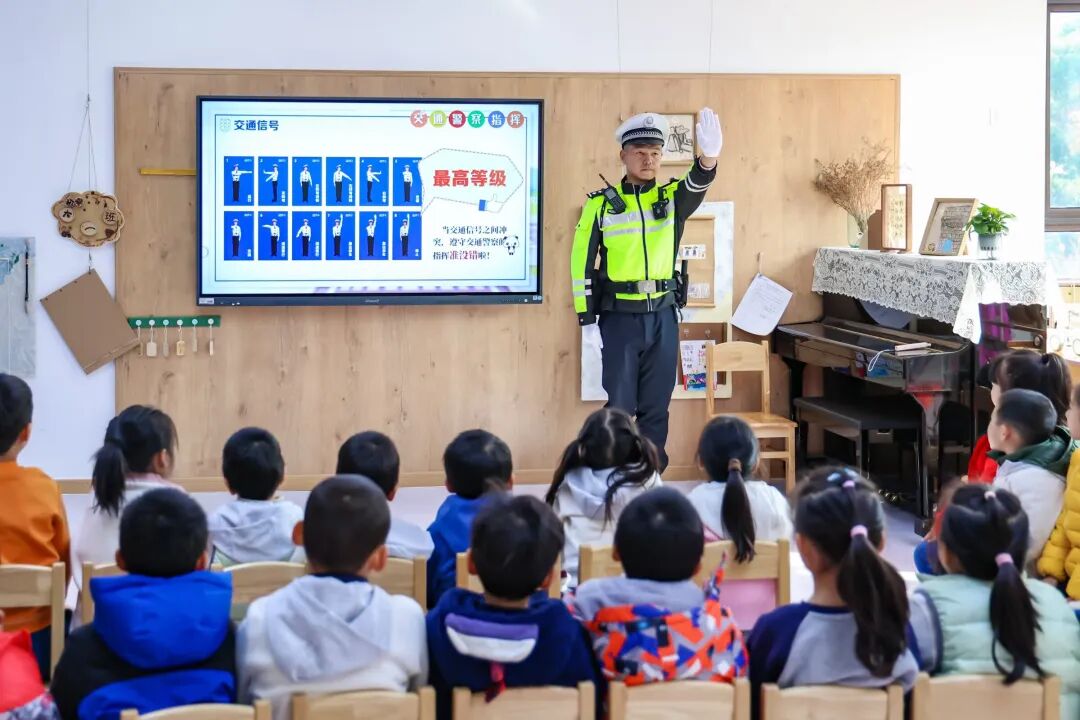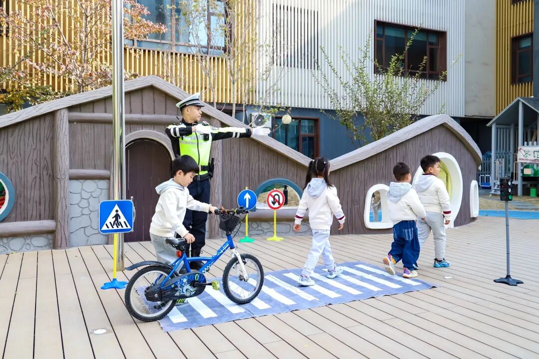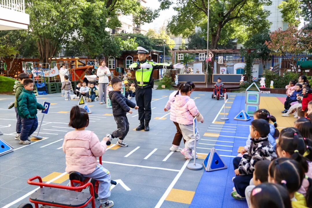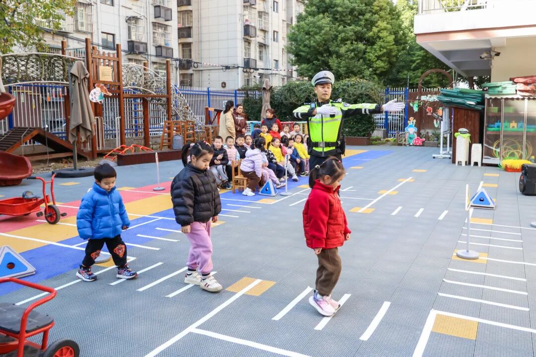 在第十四个“全国交通安全日”来临之际,11月26日,雨花台区龙福幼儿园邀请南京市公安局交通管理局雨花台区大队交警走进校园,开展交通安全主题教育活动。交警通过讲解知识、互动游戏和情景模拟等方式,用寓教于乐的形式让交通规则深入童心。
