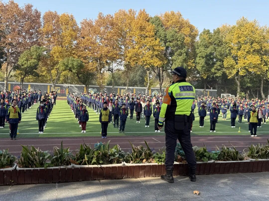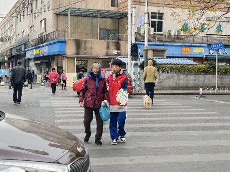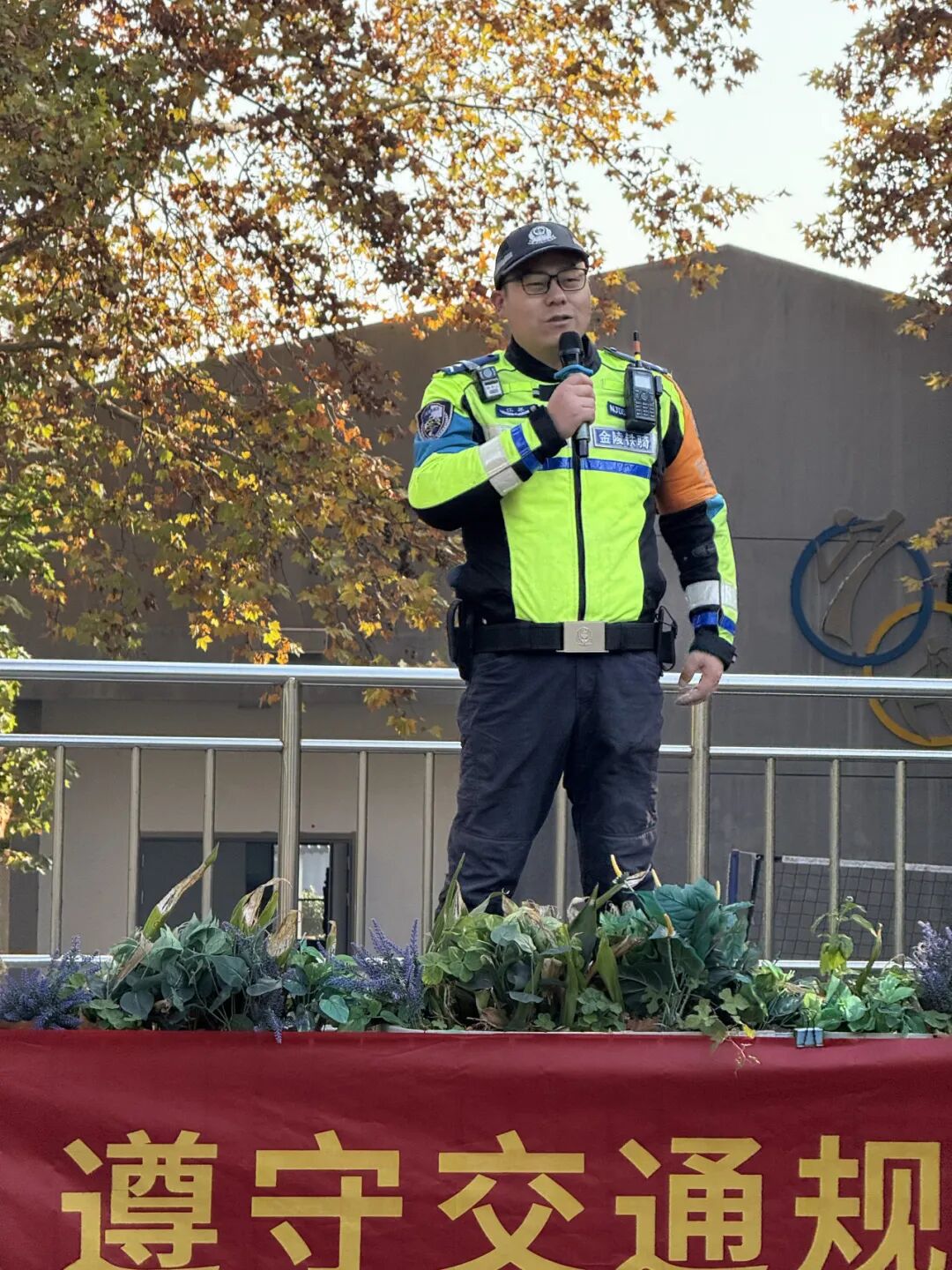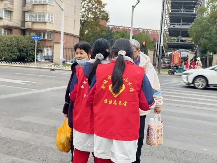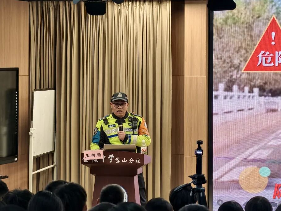 12月1日下午,交警雨花台区大队小行中队王柏顺警官走进金陵中学岱山分校,结合本地真实交通案例,深入浅出解读交通法规,细致讲解骑行安全、过马路避险等实用技巧,为同学们送上“安全锦囊”,让交通安全知识入脑入心。12月2日上午,身穿红马甲的学生志愿者手持文明引导牌,在西善花苑菜市场路口维持交通秩序,引导行人遵守规则,劝导乱穿马路、车辆乱停放等不文明行为,还主动搀扶老人安全过马路,以青春身影传递安全出行、文明礼让的社会正能量。