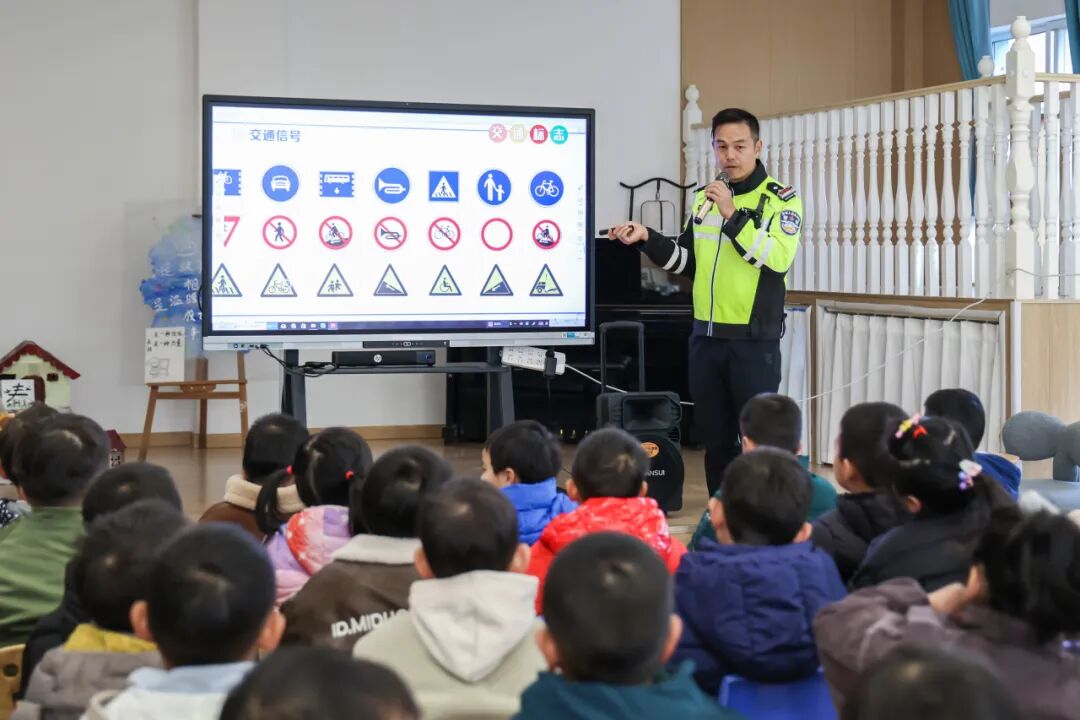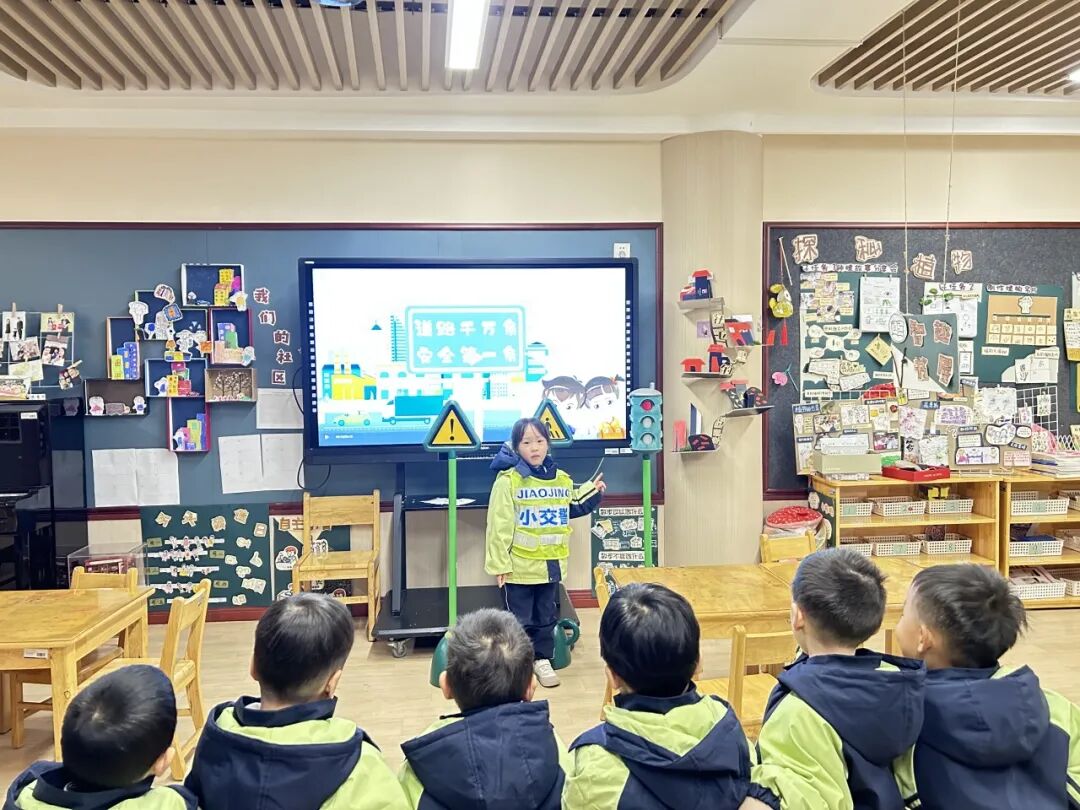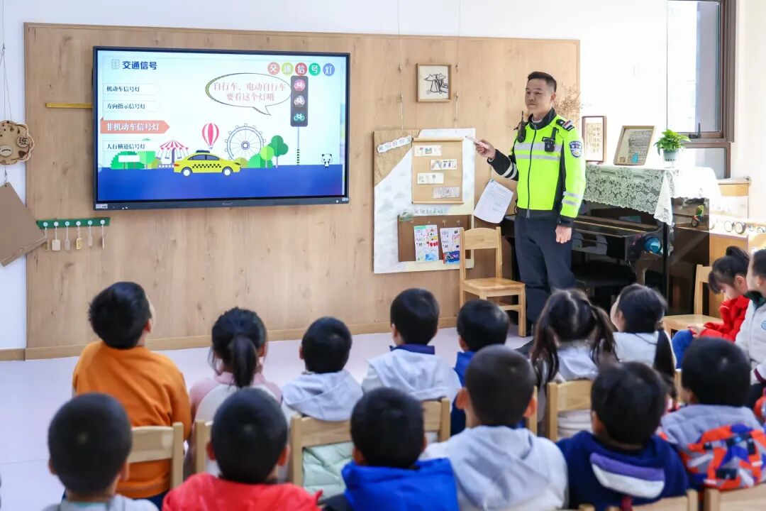 12月2日是第十四个“全国交通安全日”,南京市九都荟幼儿园以“文明交通 礼行天下”为主题,开展系列趣味安全教育活动。小班课堂上,孩子们识标志、懂信号;中班亲子携手,走出校园寻找交通标志合影学习;幼儿园特邀南京南站执勤十三中队民警授课,通过动画、互动问答传递安全知识,铁骑叔叔的装备展示与技能表演更点燃孩子们热情。大班幼儿化身“安全监督员”,在园门口提醒佩戴安全头盔、规范乘车。活动寓教于乐,既筑牢幼儿安全防线,也让文明出行理念深植童心。