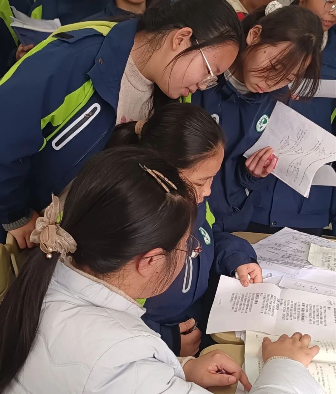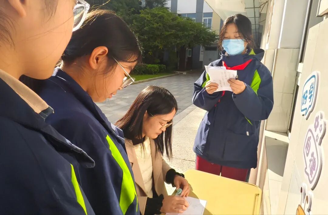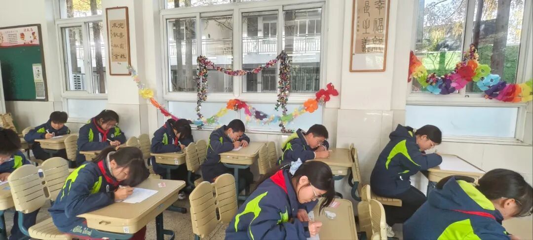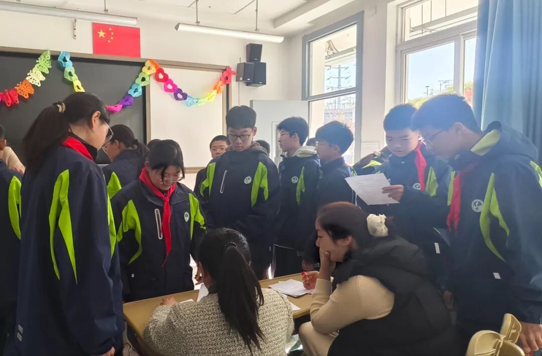 活动期间,校园里的数学热情挡都挡不住!同学们自主挤时间“打卡”挑战,热门的“计算小天才”岗常排起小长队,八年级的颜同学凑到老师身边,眨着眼睛开玩笑:“丁老师,队太长啦,能不能给我开个‘数学VIP’,提前进场闯关呀?”逗得周围同学哈哈大笑。