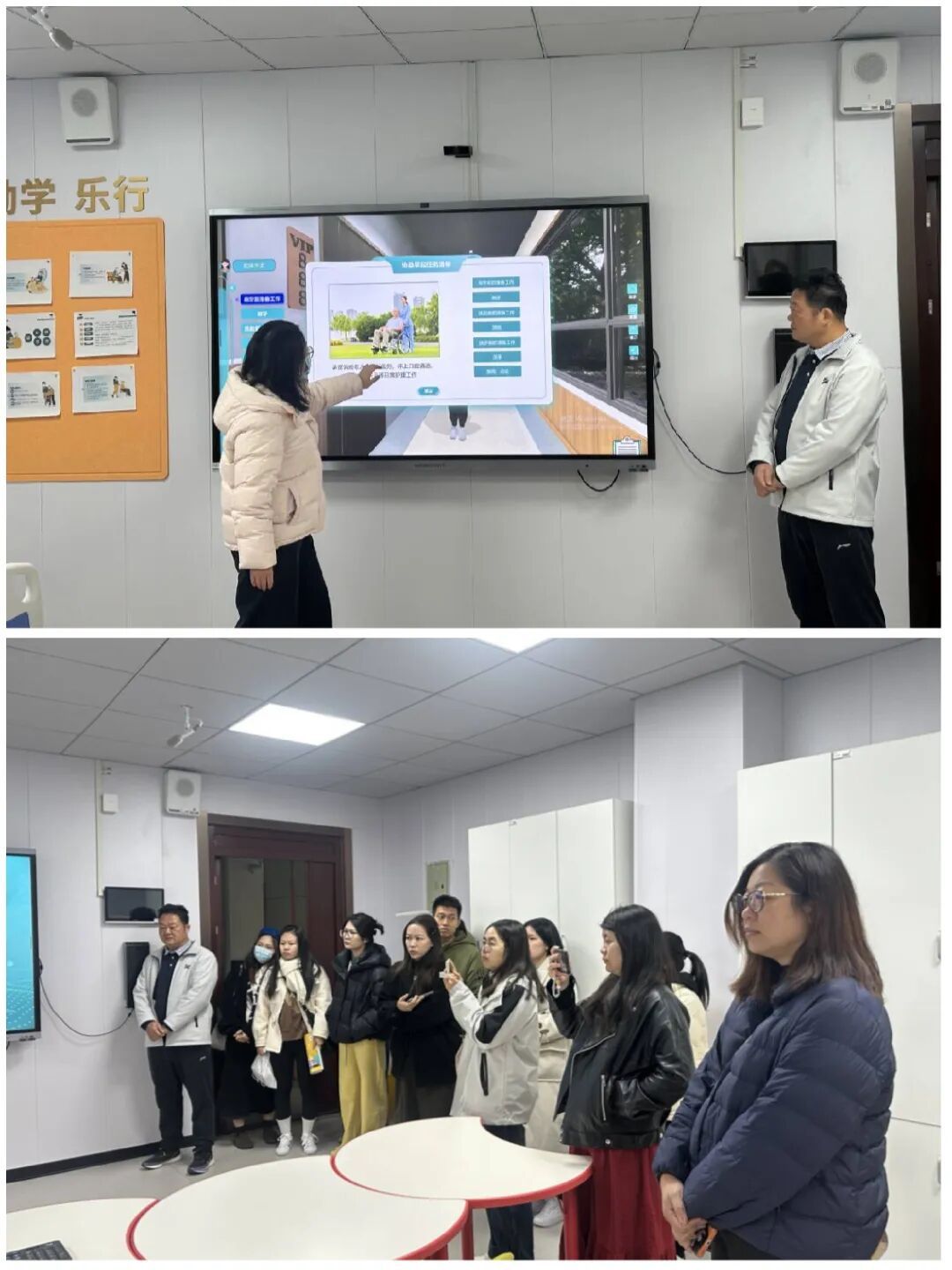 交流期间,教导处副主任陈皓然老师陪同来宾参观了校园环境及各功能教室,并重点介绍了我校在职业教育领域的课程设置、实训室建设及学生转衔安置等方面的实践成果。