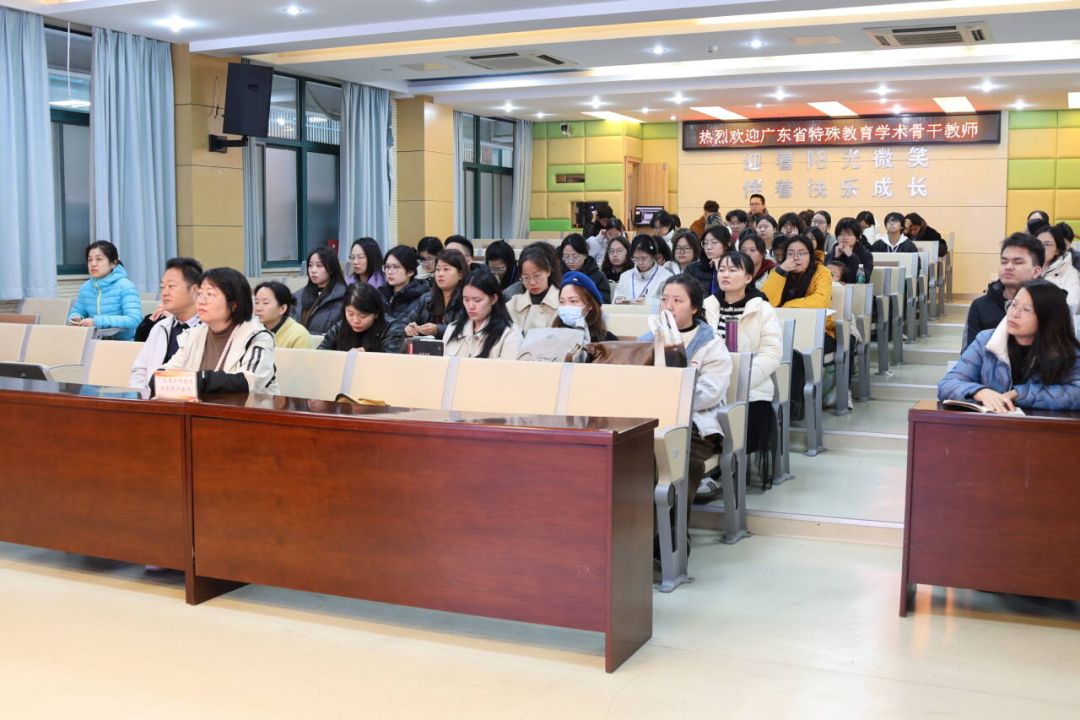 活动伊始,校长朱丽玲作了题为《以专业发展为基石,推进特殊教育高质量发展》的专题报告。报告系统介绍了我校在办学理念、课程体系建设、个别化教育实践以及融合教育推进等方面的探索历程与丰硕成果,展现了我区致力于让每位特殊需要学生享受公平而优质教育的坚定追求与实践智慧,获得了广东同仁的高度认可。