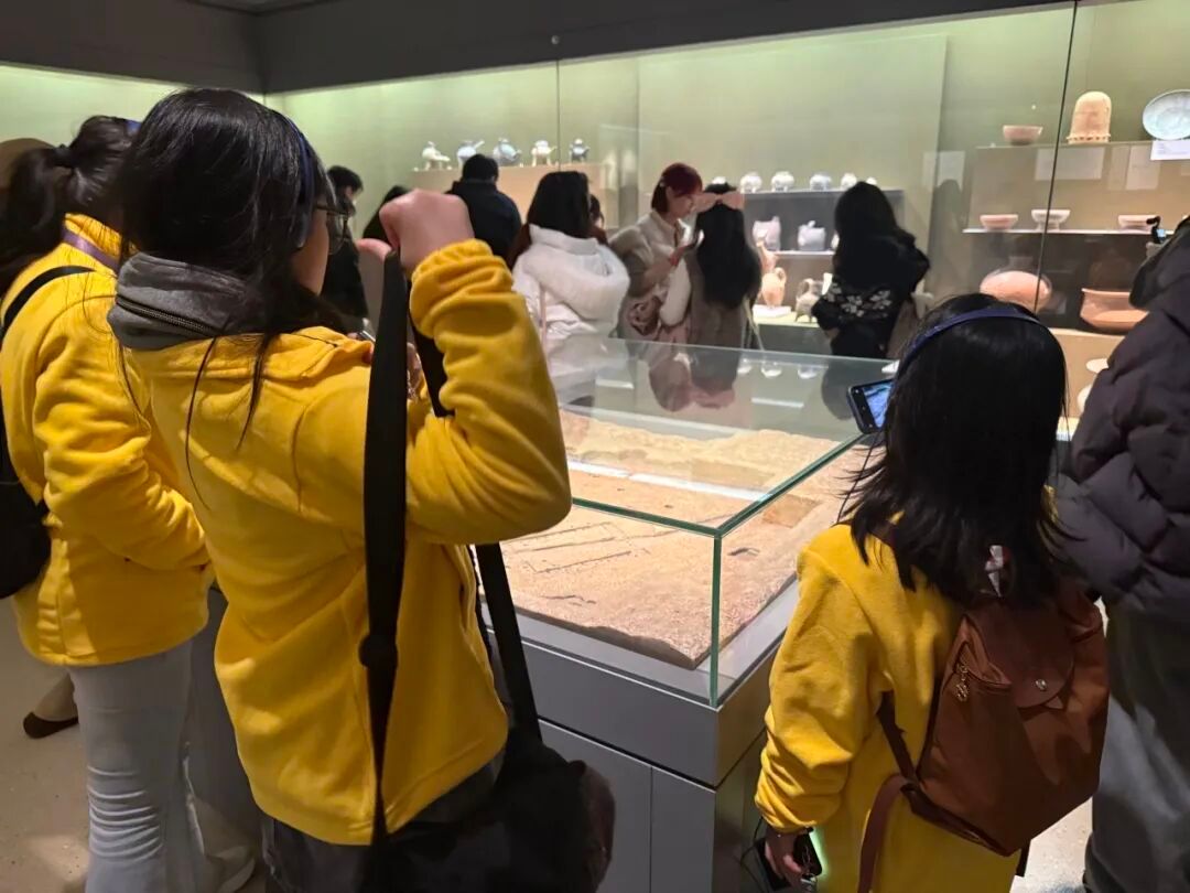 随后,林卫云校长和李可心、张桂香主任作为“文化向导”,陪同代表团走进南京博物院:从“镇院之宝”西汉金兽的鎏金工艺,到明代青花缠枝莲纹瓶的清雅釉色,大家围着展柜细细观察,听讲解老师介绍文物背后的生活场景 ——“原来两千多年前的中国人,就用这么精巧的器物过日子!” 在民国生活展区,老电话、旧课本等展品更是让代表团成员驻足良久,纷纷感慨“从这些细节里,能摸到文化的温度”。
