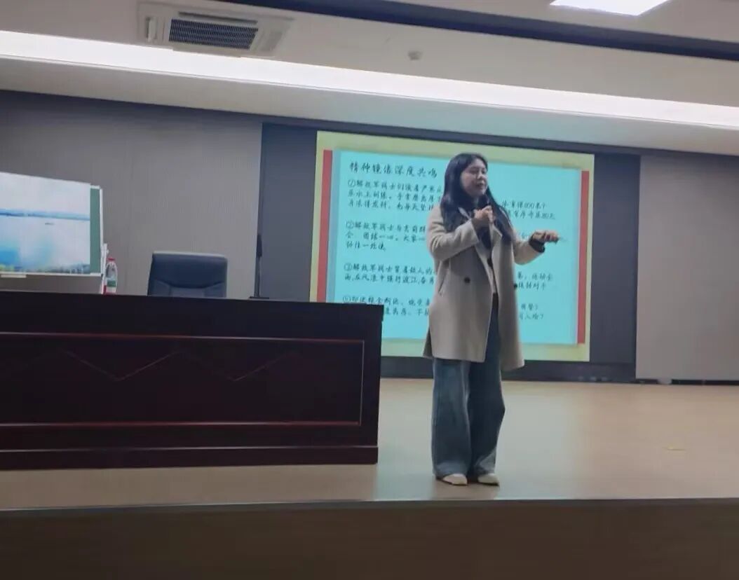 活动开篇,刘蒙老师执教红色思政课《观渡江史诗,铸少年之志》。课堂上,刘蒙老师以渡江战役研学活动为切入点,引导学生循着历史脉络,深入探讨战役背景、英雄事迹与精神内核,进而延伸至“渡江精神如何赋能日常学习生活” 的现实命题。通过个人分享、小组研讨、目标书写等多元形式,学生们在互动中感悟革命先辈的奋斗初心,将爱国情怀转化为具体奋斗目标,树立起 “做新时代渡江人” 的责任担当,让红色基因在青春岁月中生根发芽。