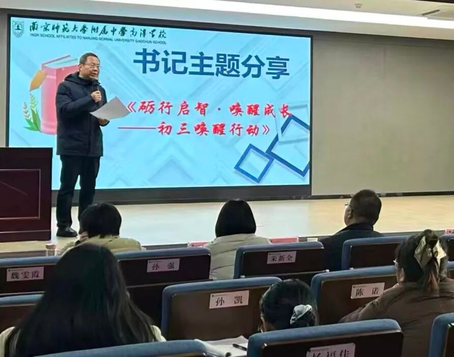 随后,南师附中高淳学校王朝阳书记为校第四届德育论坛活动致辞,并向大家作了《砺行启智・唤醒成长—— 初三唤醒行动》主题分享。聚焦初三学生成长关键期的特殊学情,王朝阳书记结合学校初三唤醒行动的真实案例,深度剖析了思政教育在破解学生 “躺平” 困境、唤醒成长内驱力中的核心作用。他强调,育人需秉持耐心与智慧,要摒弃简单化的施压模式,给予学生足够的成长空间与时间,王朝阳书记务实深刻的分享为初三德育工作提供了可落地的实践方案。
