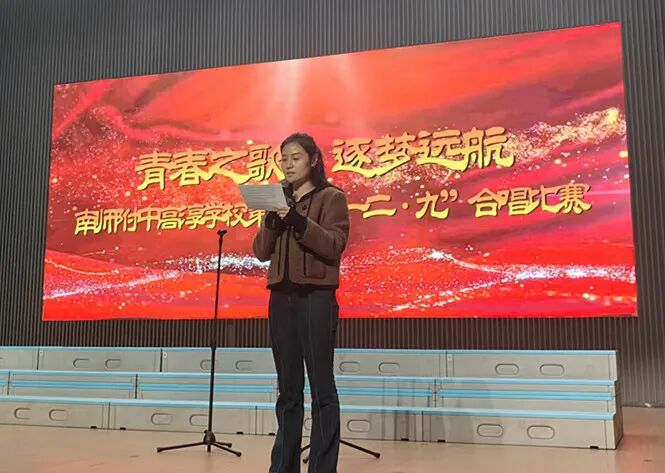 在“一二·九”运动90周年之际,南师附中高淳学校于12月11日举办第三届“一二·九”八年级合唱比赛。八年级师生在大报告厅唱响红色旋律、展现青春担当,成为本次活动中一道亮眼的风景线。