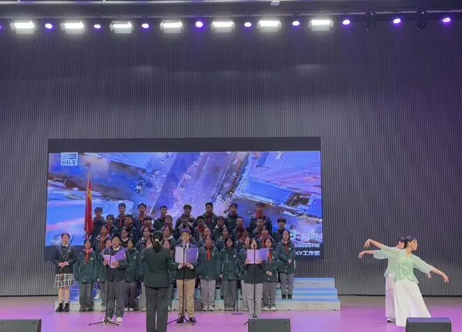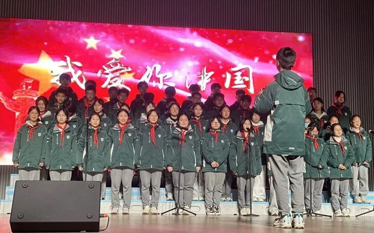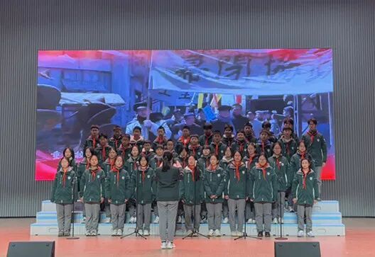 舞台上,八年级学子们以饱满的热情、整齐的声部完成演唱,每一个动作、每一句歌词都饱含着对革命先辈的缅怀和对时代使命的认知,不仅充分展现了极强的集体荣誉感,更彰显出新时代中学生昂扬向上的青春风采。 此次八年级专场的合唱展演,是学校“一二·九”系列活动的重要组成部分,既为学子们提供了展现自我的舞台,也让大家在歌声中重温红色历史、传承“一二·九”精神,将个人成长与家国使命紧密相连,以青春之姿践行责任担当。