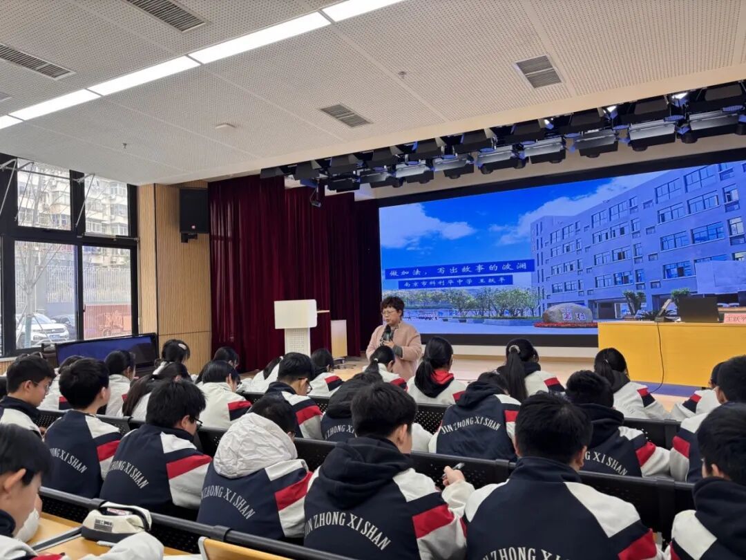 书香未散,思维的火花已在报告厅点燃。民进雨花台区总支邀请的江苏省语文特级教师、南京市科利华中学教科室主任王跃平老师为全体初二学生带来题为《做加法,写出故事的波澜》的精彩讲座。