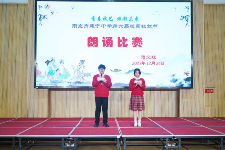 青春之声吟经典,书香雅韵润心田。12月27日,南京市建宁中学隆重举行第六届校园技能节朗诵比赛。全体师生齐聚一堂,以琅琅诵读展时代风采,以悠悠文韵传家国情怀,共赴一场激荡青春,浸润心灵的艺术盛宴。