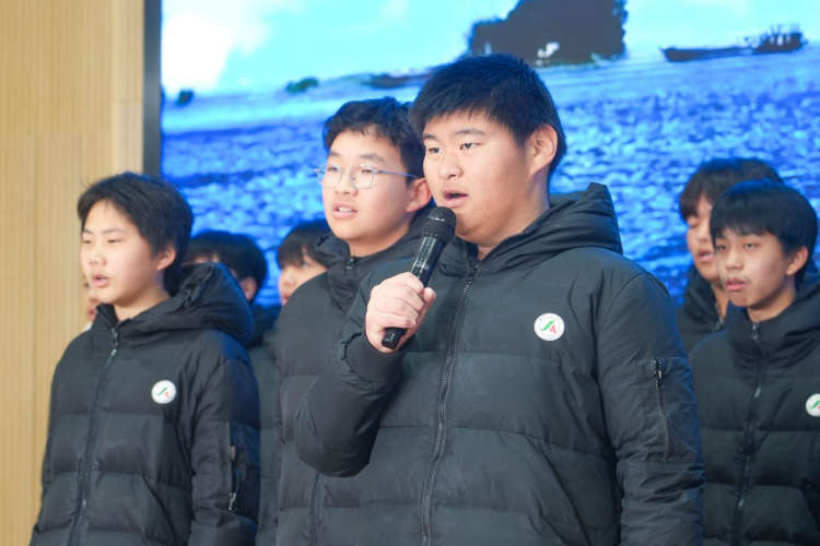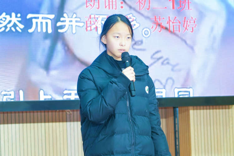 初二(1)班的同学们深情朗诵罗素的《我为什么活着》,沉稳坚定的语调,将对知识的追求与对人类苦难的怜悯缓缓诉说,带领全场听众一同叩问生命的意义。