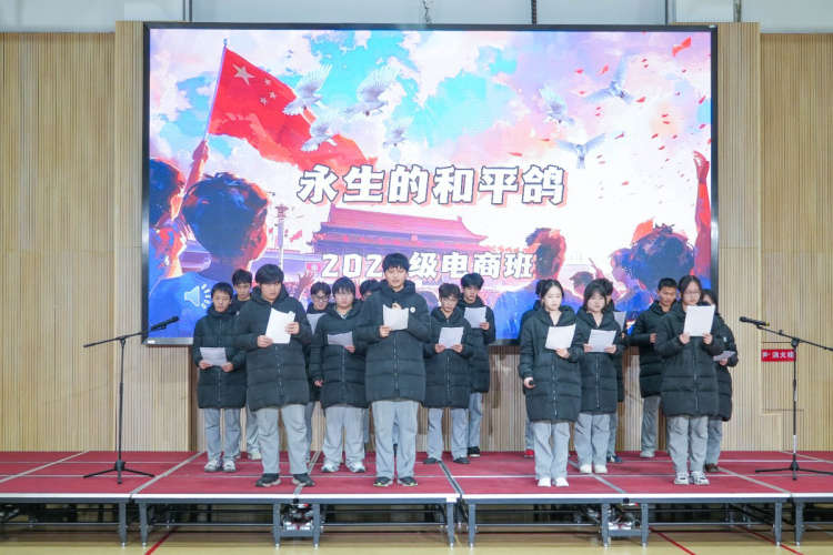 中专二班的同学们带来《永生的和平鸽》,以庄重而深情的朗诵,为和平与生命献上诗意的礼赞。