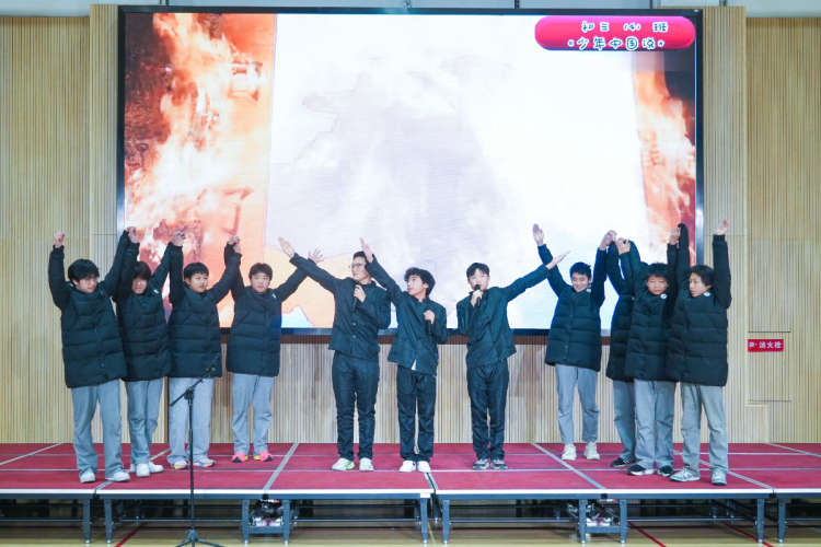 初三(4)班带来梁启超《少年中国说》,少年之声如朝阳喷薄,响彻全场。他们昂首挺胸,字句铿锵,这是新时代少年向未来的集体宣告——“少年智则国智,少年强则国强!”