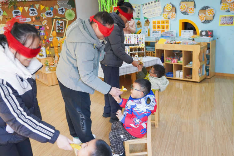 “健康知识转转乐”站点,幼儿通过组装健康行为图片,深化了对健康饮食与个人卫生的认知;“爱心医护小天使”游戏中,亲子协作共同完成模拟治疗,增进默契;“健康宣讲小达人”环节,幼儿通过趣味问答,轻松掌握了各种健康知识;“健康行为对对碰”以趣味游戏形式,引导孩子们快速辨别并巩固良好行为习惯;“多吃果蔬身体好”通过亲子蒙眼送水果等游戏,在欢乐中传递营养均衡的重要性,“病毒来了我不怕”游戏中,幼儿们纷纷化身健康小卫士,手持玩具“针筒”,与病毒展开作战。