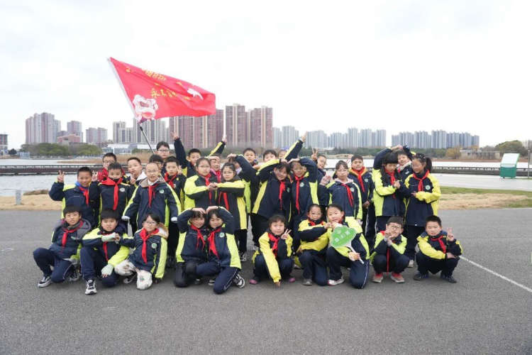 莲花湖畔的班级打卡点,更为这场健步之旅增添了趣味与温馨。在湖光美景构成的天然画卷前,孩子们高举旗帜或趣味标语牌,拍照留影,把欢声笑语的瞬间永久定格。