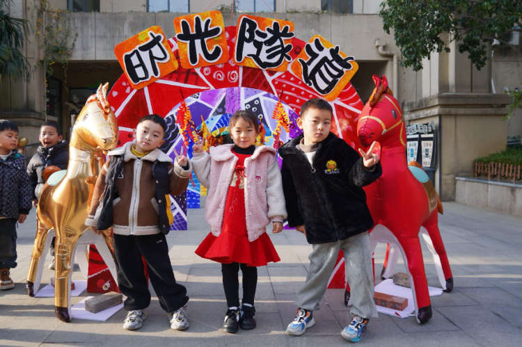 最受期待的年货大街义卖活动开始啦!一个个特色小摊位整齐排列,火红的中国结、精巧的窗花剪纸、呆萌的泥塑、实用的布艺冰箱贴……琳琅满目的非遗商品让人眼花缭乱。小小摊主们”热情地向家长和小伙伴推销,稚嫩的叫卖声此起彼伏,小买家们时而认真比较,时而和“小摊主”有模有样地讨价还价。整条街洋溢着童真的热闹与温暖的善意,仿若一幅生动鲜活的新年画卷。