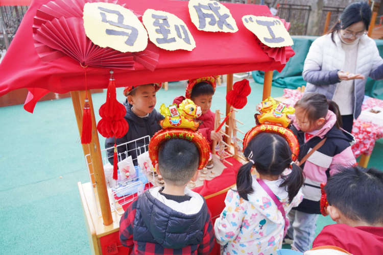 除了热闹的义卖,年货大街里的趣味游戏区也人气爆棚!套圈、抽盲盒等经典游戏让小朋友们玩得不亦乐乎。教师和家长们也积极参与,或亲自上阵,或与孩子协作,共同赢取新年小礼品。