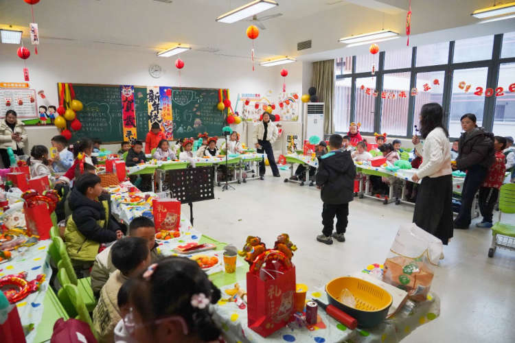 除了校级层面的精彩展演,各班级也开展了形式多样的特色活动,让每个孩子都能参与其中、乐享节日。教室里张灯结彩,洋溢着浓浓的新年氛围。同学们围坐在一起,共同观看了年级展演的优秀视频作品。不少班级还组织了才艺展示,有的同学演唱歌曲,有的演奏乐器,有的朗诵阅读过的经典篇目,稚嫩的声音与认真的模样赢得了阵阵掌声;趣味游戏环节更是将班级活动推向高潮,“词语接龙”“故事猜猜猜”“书香知识问答” 等游戏,既考验了同学们的阅读积累,又增进了彼此的情谊,大家在欢声笑语中收获了快乐与成长。老师们也融入其中,与同学们一起互动游戏、分享零食,教室里处处洋溢着师生同心、其乐融融的馨画面。