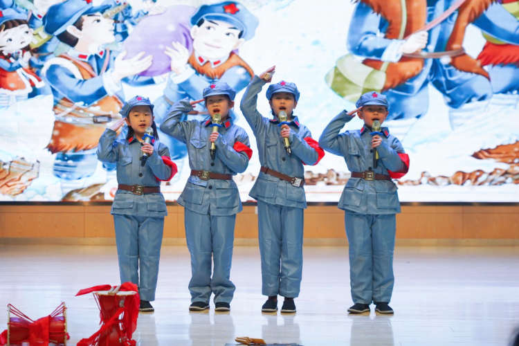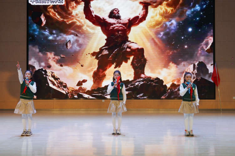 一(3)班的孩子们带来《拔苗助长》,以稚气未脱的演绎传递 “万物生长皆有其时” 的古老智慧。二(3)班的《长征路上的红小丫》通过歌声与快板,再现了11岁小红丫跨越雪山草地的坚韧身影,让长征精神在舞台上熠熠生辉。四(2)班的《愚公移山》则以饱满的热情诠释了 “坚持不懈、金石可镂” 的精神内核,深深打动了在场每一位观众。五(2)班的《包公审石头》更是精彩绝伦,小演员们将包公的铁面无私与机智聪慧展现得淋漓尽致,让大家在趣味故事中感受正义的力量。