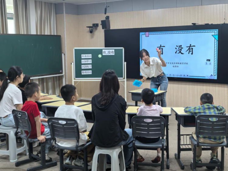 活动伊始,玄武特校赵倩怡老师执教了一节生动鲜活的生活数学课《有、没有》。赵老师立足孤独症学生的认知特点,以丰富的实物教具为载体,在丰富的感知活动与趣味游戏中引导学生建立 “有、没有” 的核心概念,充分展现了生活化、游戏化的特教课堂特色,赢得参访教师的一致认可。