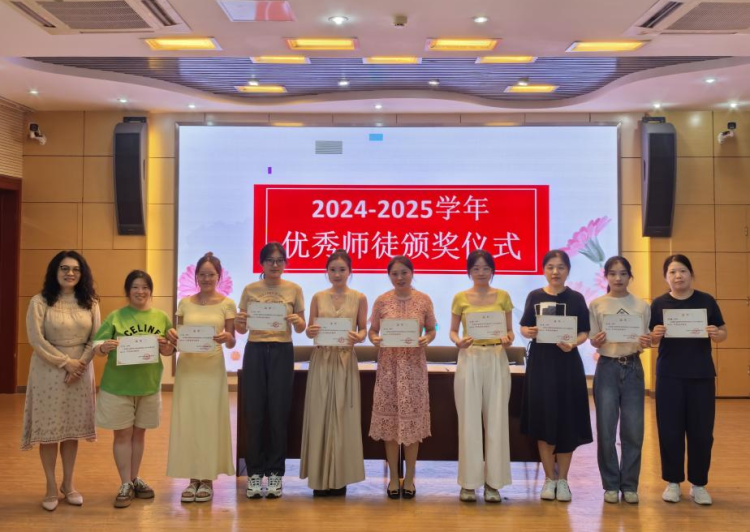仪式首先对2024—2025学年优秀师徒进行表彰,由朱丽玲校长为获奖教师颁发证书与奖品。