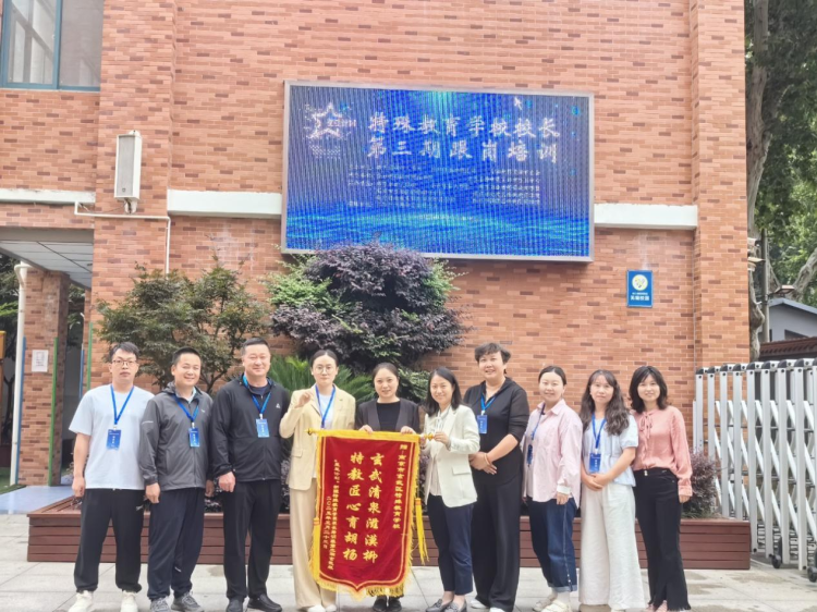 培训结束时,校长培训班学员将一面印有 “玄武清泉滋漠柳,特教匠心育胡杨” 的锦旗,赠予南京市玄武区特殊教育学校。他们表示,玄武特校在特殊教育领域的创新实践与专业匠心,如同清泉滋养沙漠之柳,为新疆特殊教育发展带来宝贵经验与启发,并期待未来双方深化交流合作,携手培育更多特殊教育领域的 “胡杨”,共同推动特教事业发展。