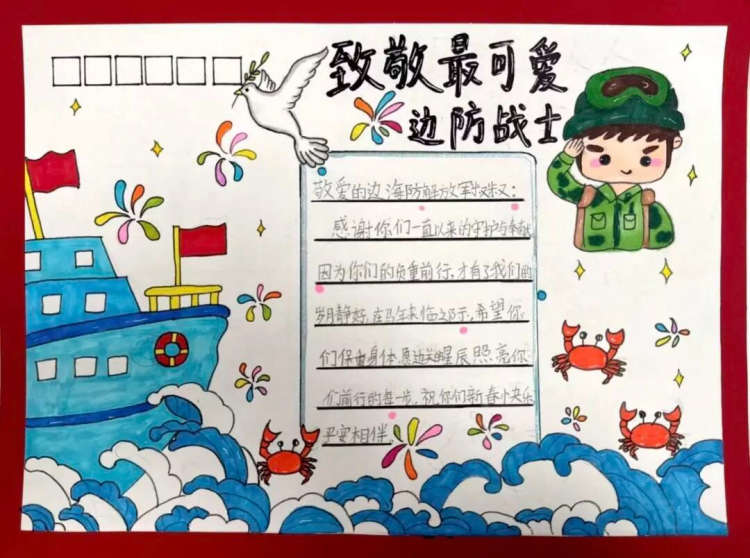 随着新春的脚步临近,我校小学部积极响应“情系边海防官兵”春节专项慰问活动,同学们热情参与,用童心巧手精心制作了饱含深情的慰问书信卡片。目前,这些承载着全校师生崇高敬意与美好祝愿的作品,即将带着温暖飞向遥远的边海防哨所。